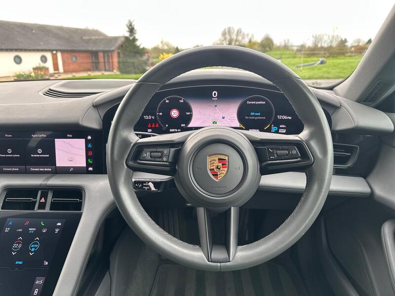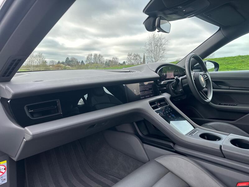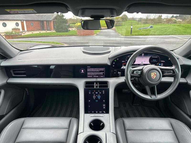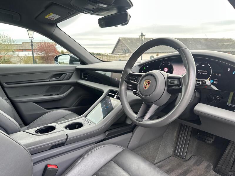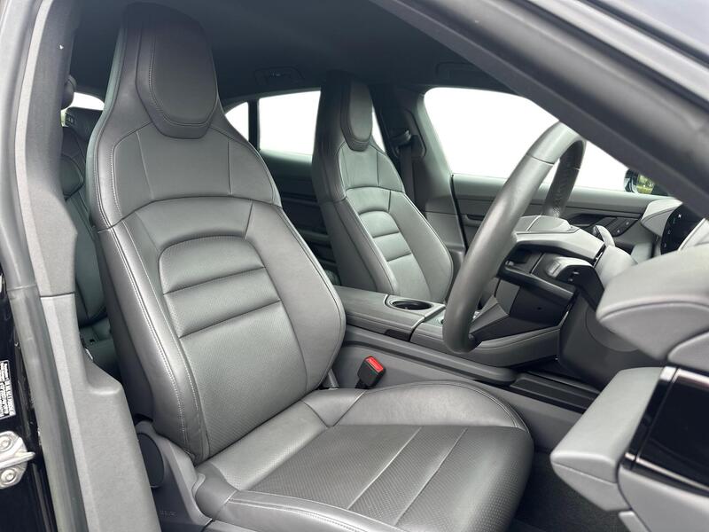 This is a Porsche Taycan Performance Plus finished in Jet Black Metallic with a Slate Grey Leather Interior. It comes with desirable options such as Head-Up Display, upgraded 93.4kWh battery, and full Porsche service history.