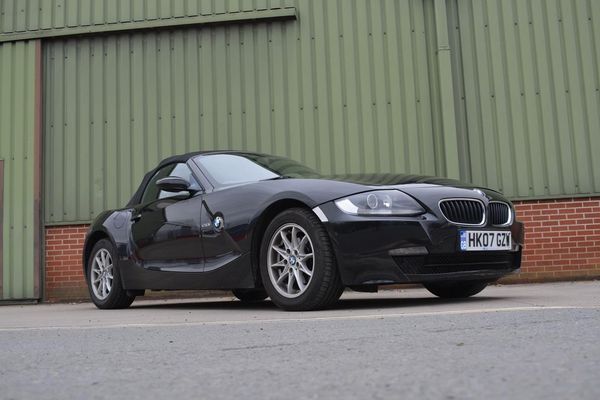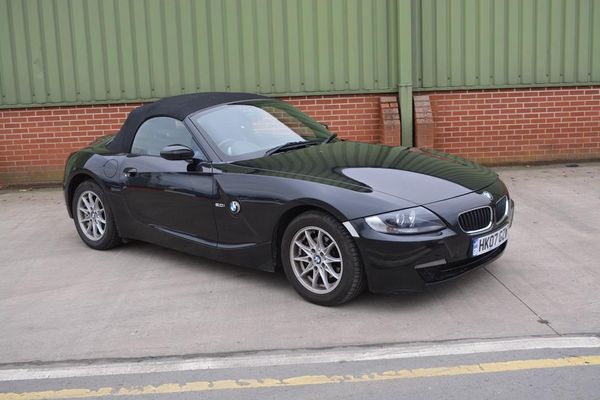 This 2007 BMW Z4 2.0i SE Roadster has 87,000 miles and features a 6-speed manual transmission, electric hood, air conditioning, and blue half-leather seats. It was involved in a Category N insurance loss last year, but recently passed its MOT with no advisories.