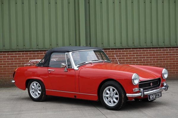 This 1970 MG Midget MkIII has been impeccably maintained, featuring a rebuilt engine with only 22k miles. It comes with a large history file, a reconditioned gearbox, and a new hood, making it a smart and appealing classic car.