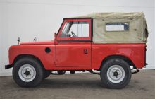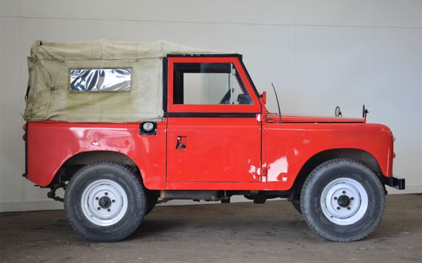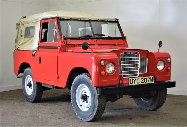 This 1974 Land Rover Series III 88" is a tidy, red vehicle with a canvas top, believed to have been a Fire Chief's vehicle. It features a 2,286cc four-cylinder petrol engine, recent carb fitment, and some service history, including a stainless exhaust fitted in 2019. While it has minor wear and an expired MOT, it's tax and MOT exempt and ready for enjoyment.