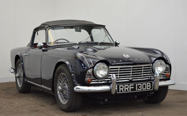 This 1964 Triumph TR4 is a cosmetically restored example with a Surrey top and desirable wire wheels. While the paint finish has some micro-blistering and there's a slight panel misfit on the boot, the car runs well and has a comprehensive history file including photos of the restoration.