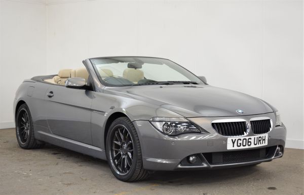 This 2006 BMW 630i Cabriolet is finished in Stratus Grey Pearl and has a cream leather interior. It has a high mileage of 119,972 miles and has had 5 former owners, but it comes with a good service history and a long MOT.