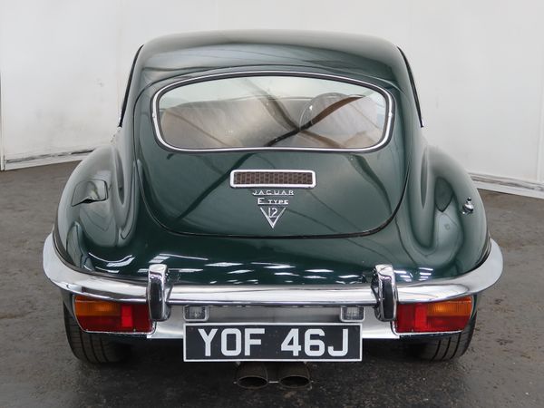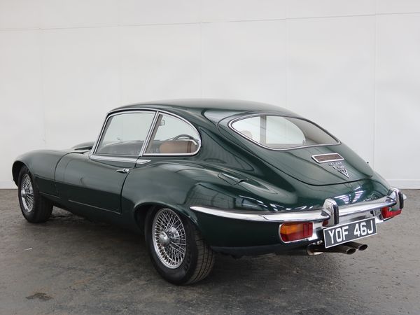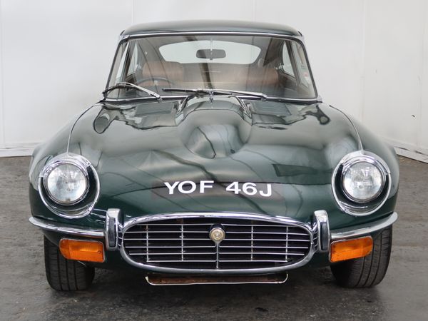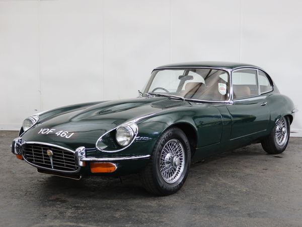 Description Only 59,800 miles indicated; previous owner 21 years; only 2,000 miles since major £8,800 mechanical overhaul; manual gearbox; running and driving nicely on site; front valance panel requires attention As the Heritage Certificate confirms, this Jaguar E-Type V12 Coupe was built in March 1971 finished in British Racing Green with a Cinnamon hide interior and 4-speed manual gearbox.