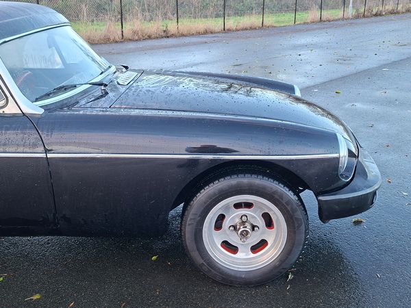 Finished in black with a matching black leatherette interior and complemented by a wooden steering wheel, it offers a timeless look that suits the iconic lines of the MGB.