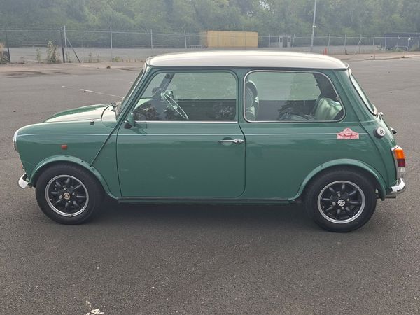 This is a rare, limited edition 1996 Mini Cooper 35th Anniversary model, one of only 200 made for the UK market. It features a fuel-injected engine, manual transmission, full leather interior, and has only 30,000 miles; although it was subject to a Category C write-off in 2008.