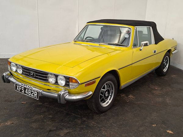 This 1977 Triumph Stag is a stylish, Mimosa Yellow four-seat convertible, boasting a 3.0-litre V8 engine with overdrive and a recently refurbished black interior. With a long, advisory-free MOT and its status as a historic vehicle, this cult classic offers grand touring comfort and distinctive British design.