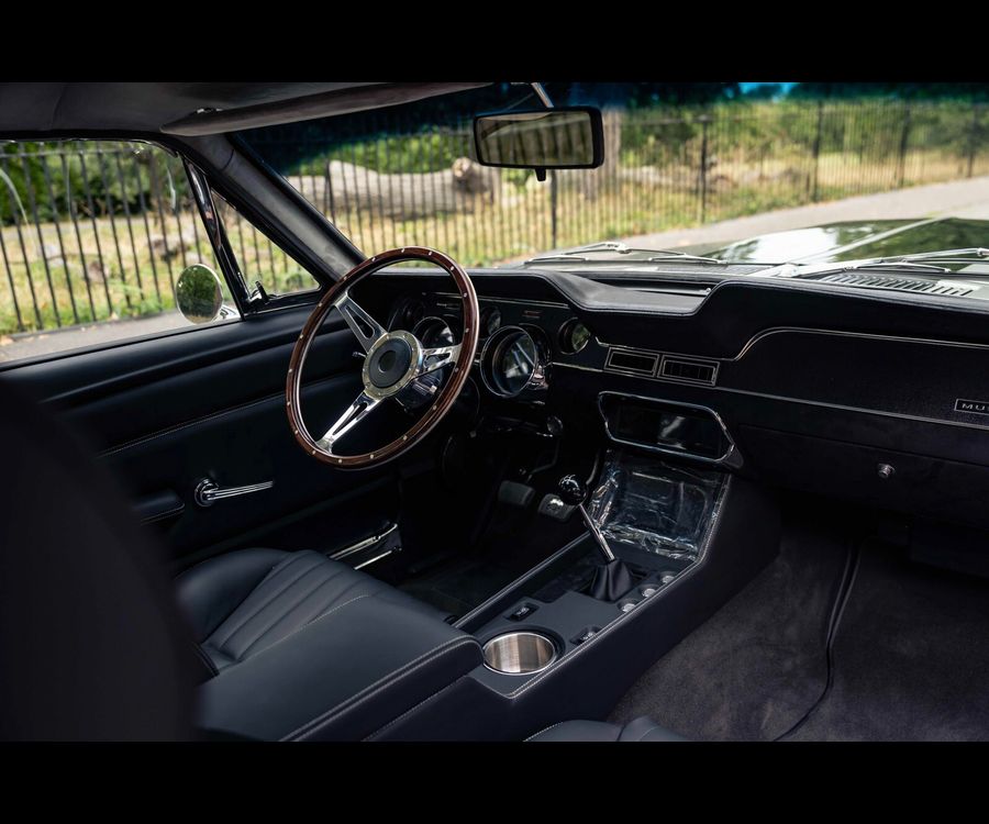 This 1967 Ford Mustang GT500CS Fastback is a meticulously restored restomod featuring a Ford Coyote GEN3 engine, Tremec 6-speed manual transmission, and a luxurious Bentley Beluga leather interior.