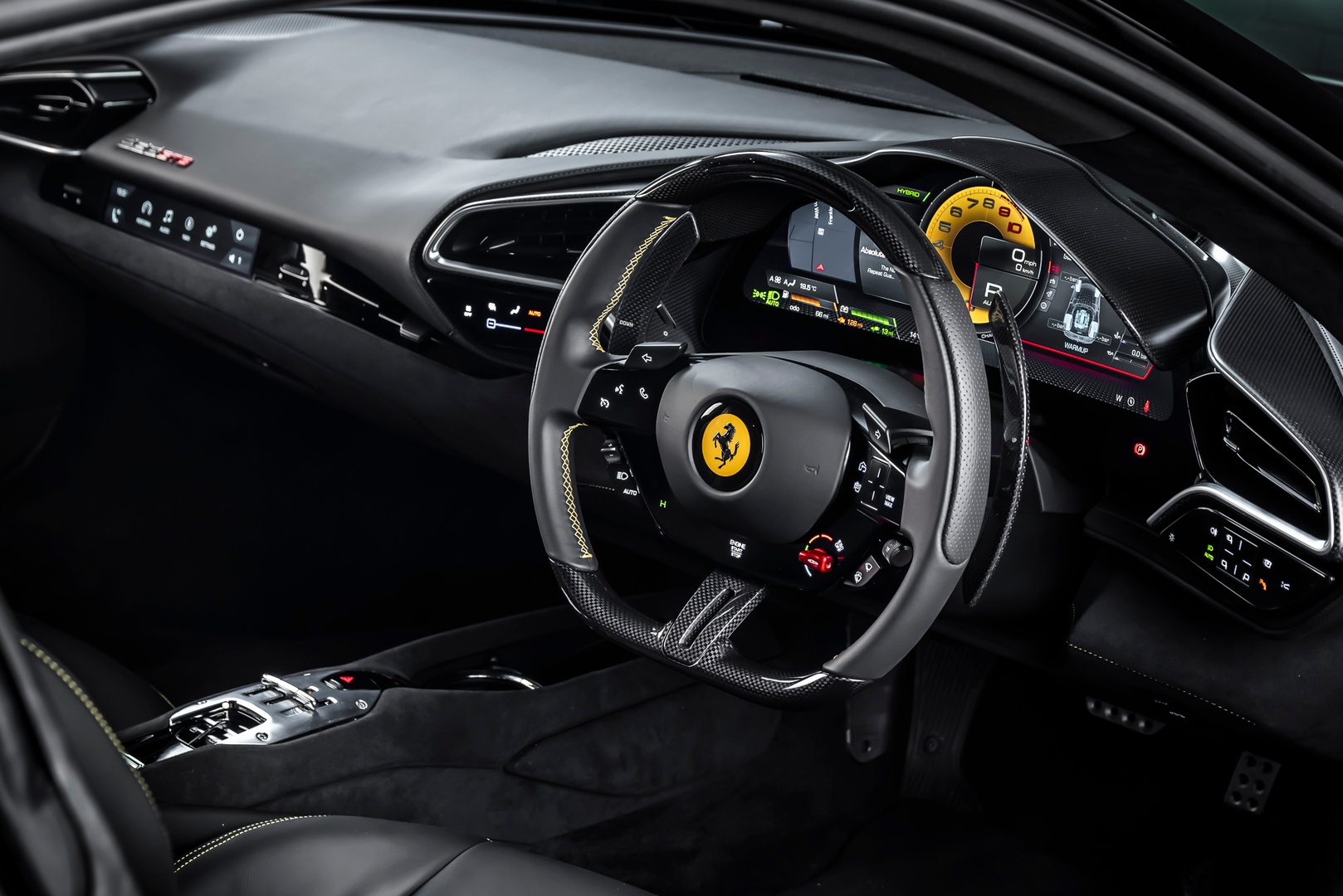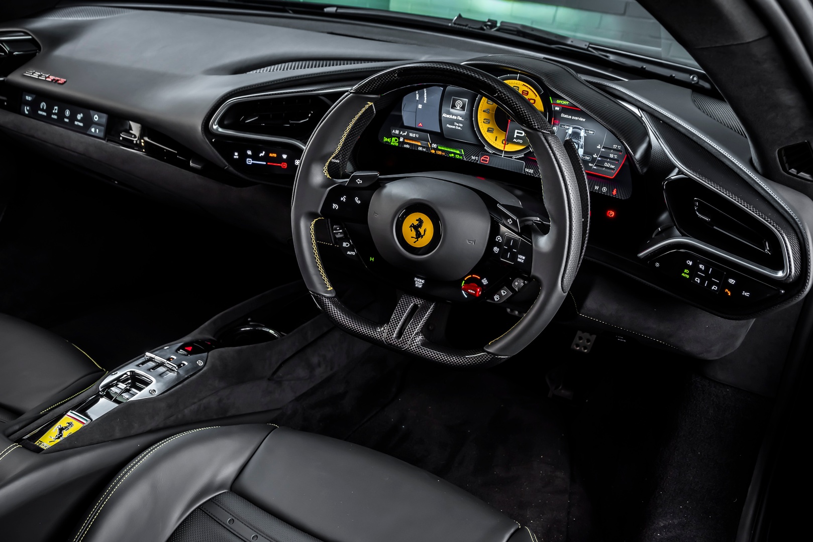 This Nero Stellato Ferrari 296 GTB is for sale in the Swindon region for £219,990.
