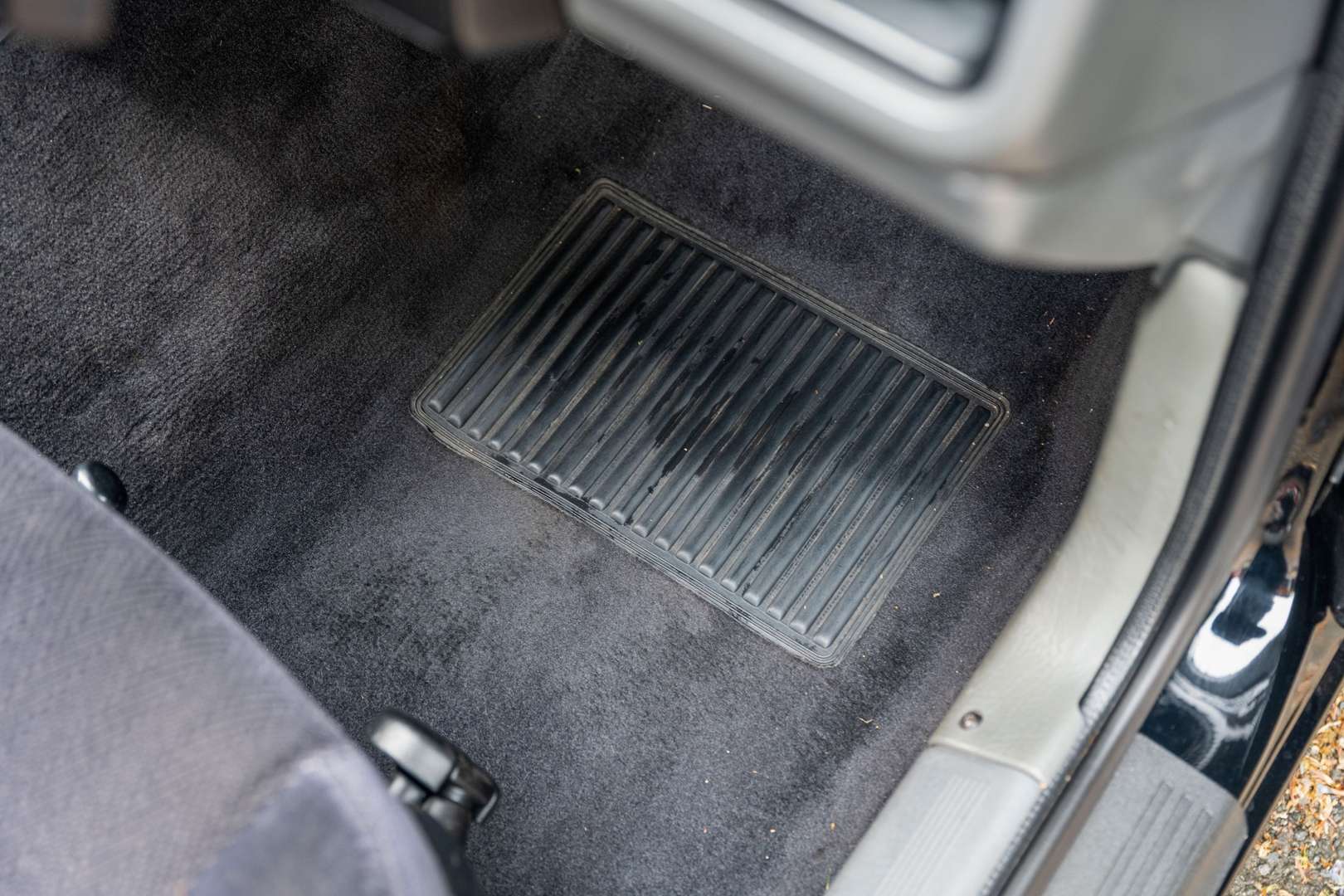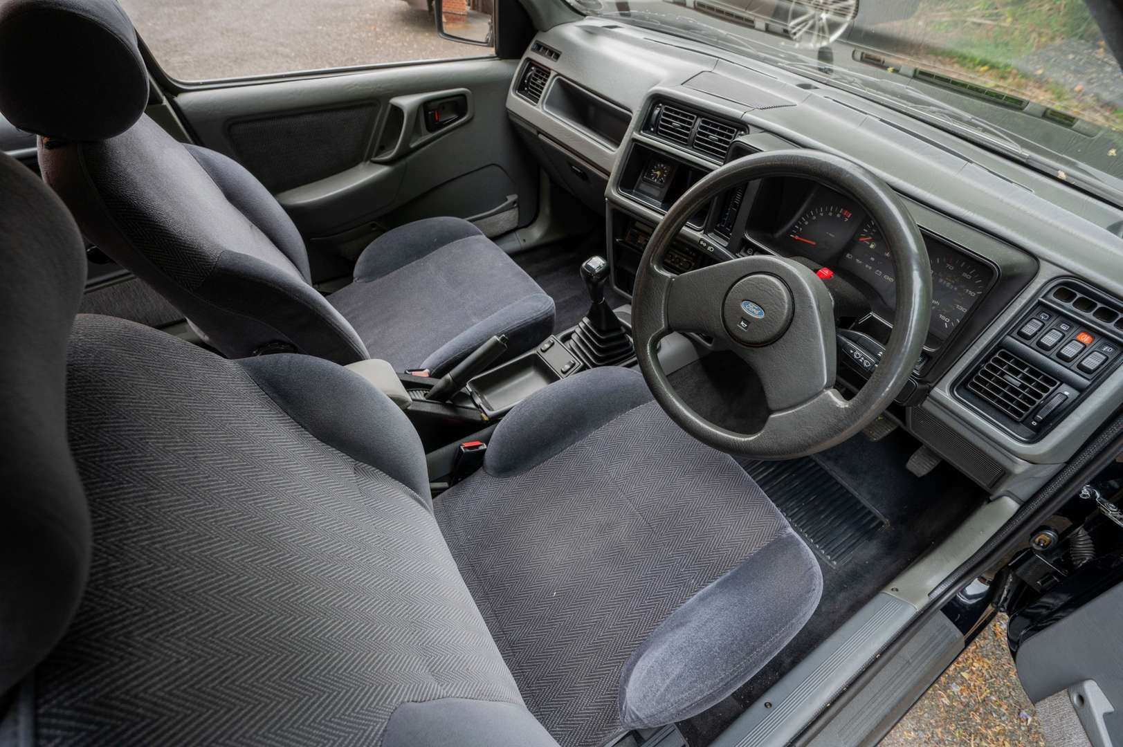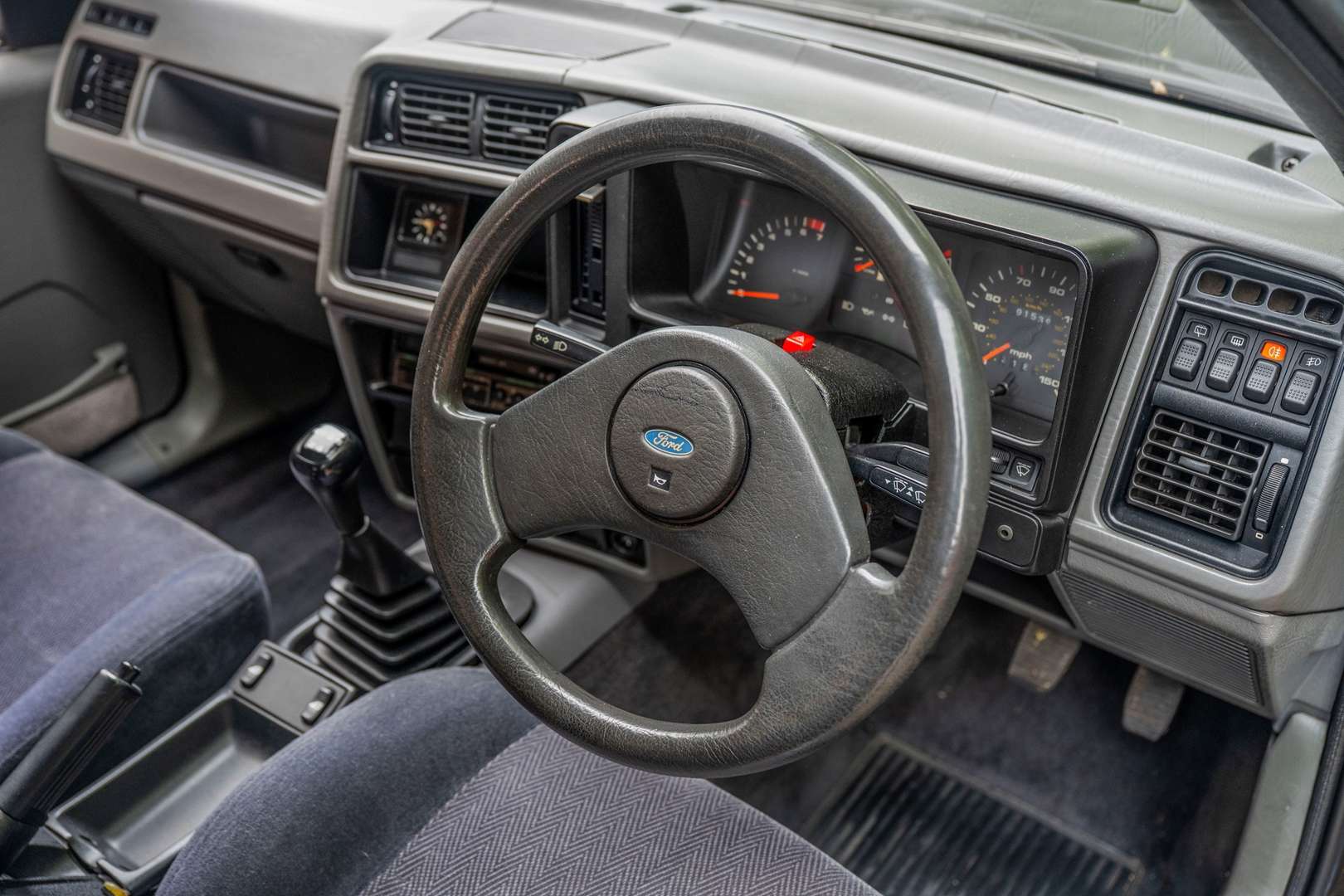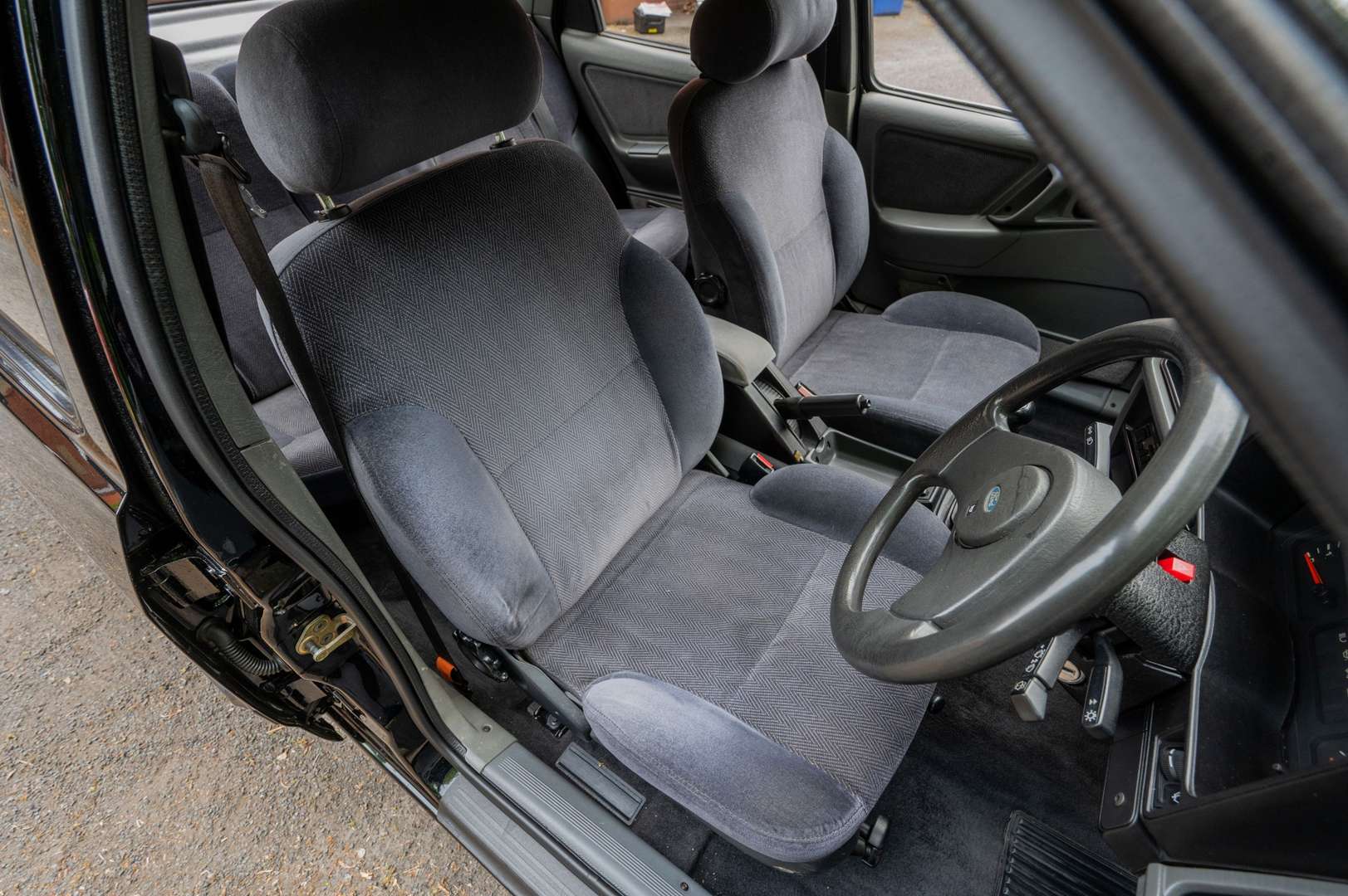 The car is described as being in great shape, with deep black paintwork and a lovely grey trim. The vendor mentions age-related marks may be present. There are a few heat cracks on the dash, and the odd scuff on the plastics but all in all it is a lovely place to be, no rips, no tears, no stains, even the over mats look good and the rear seats look like they have hardly ever been sat on.