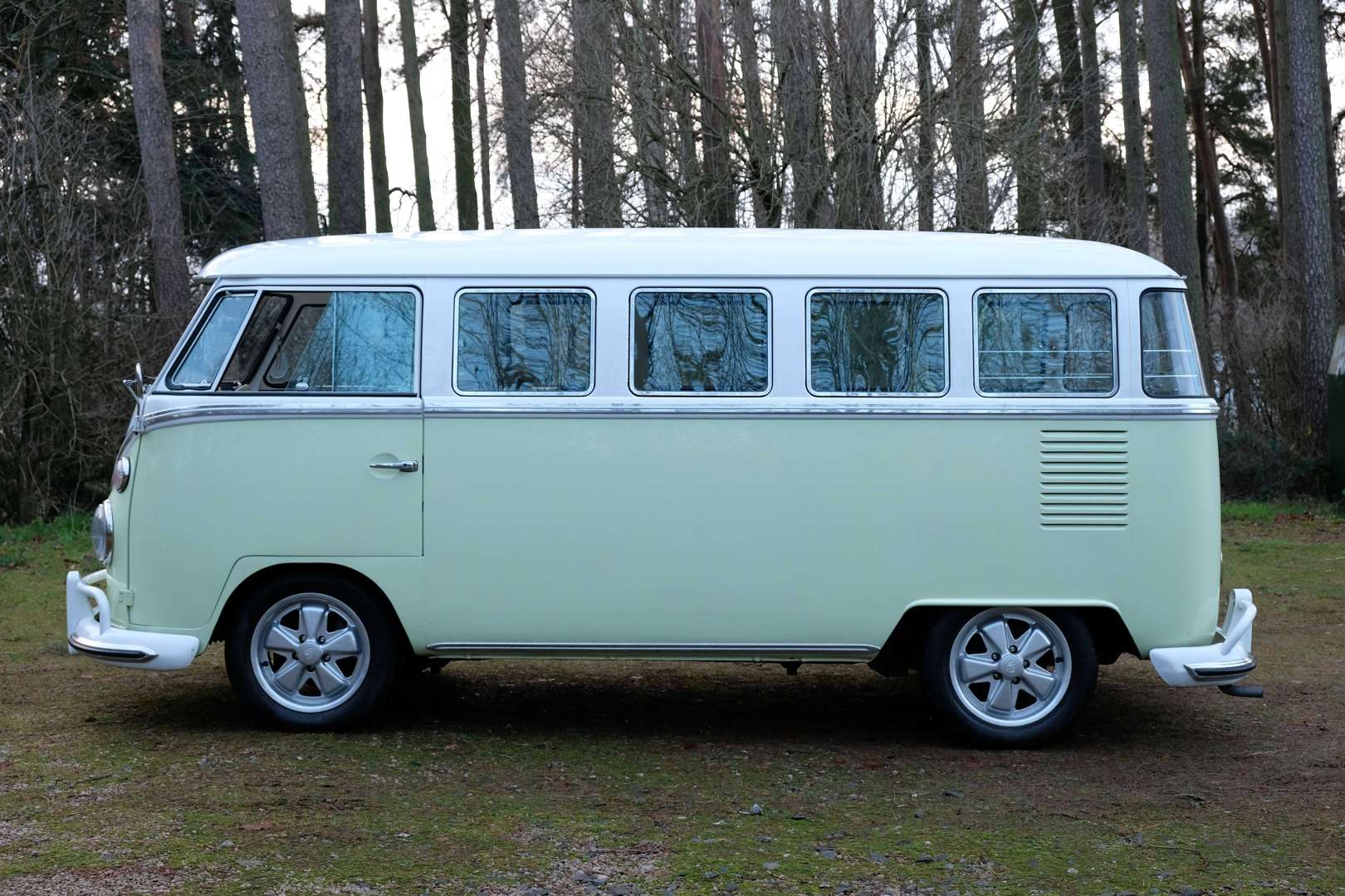Multiple award-winning, meticulously maintained and successfully operated as a premium wedding bus, it blends iconic VW charm with usability, reliability and serious collector appeal.Background & HistoryAn increasingly collectible variation of the legendary Split Screen, prized for its practicality and style.1969 Brazilian built 15 window VW T2 Split Screen busAttractive White over Pastel Green colour schemeFull restoration completed approx.
