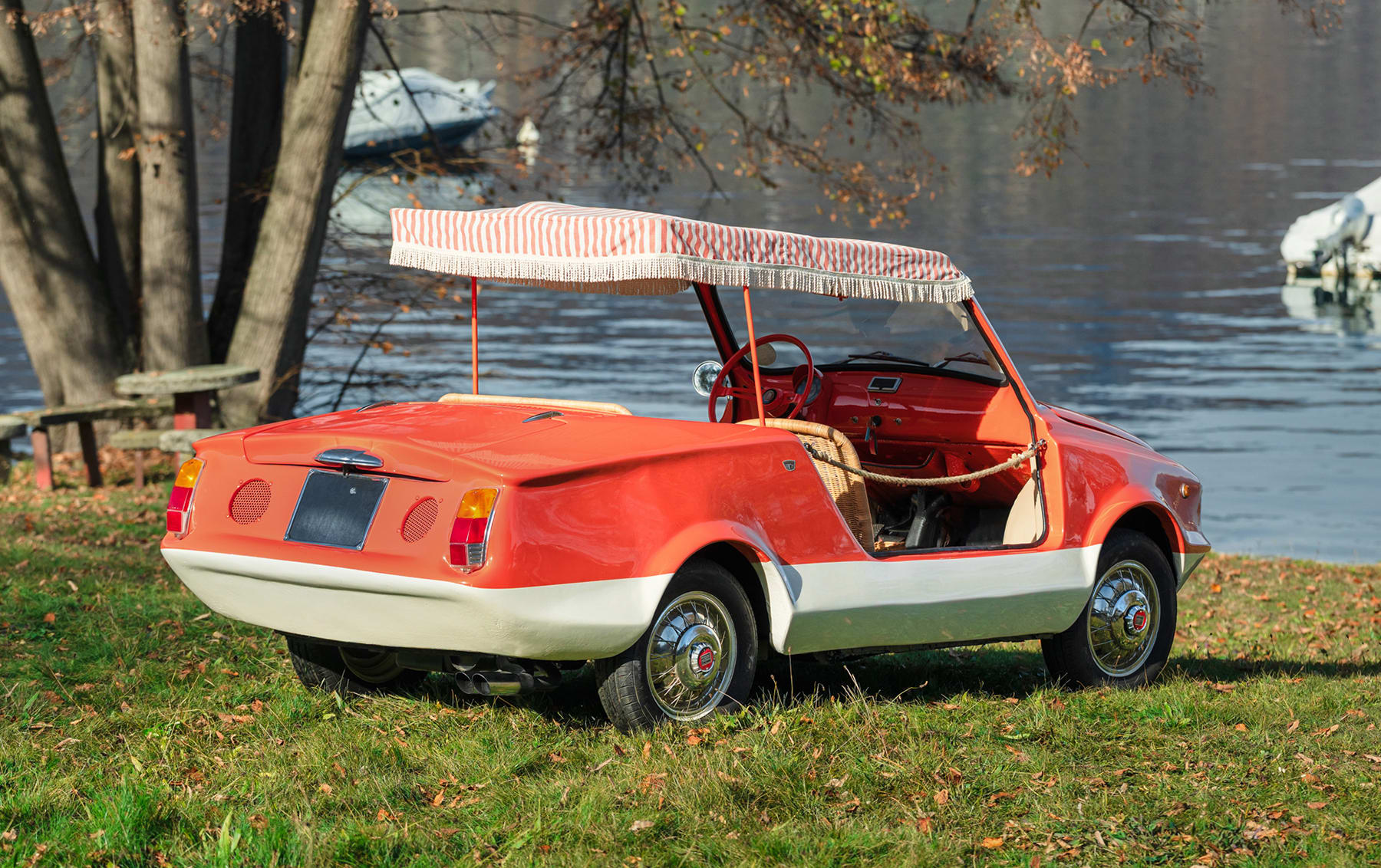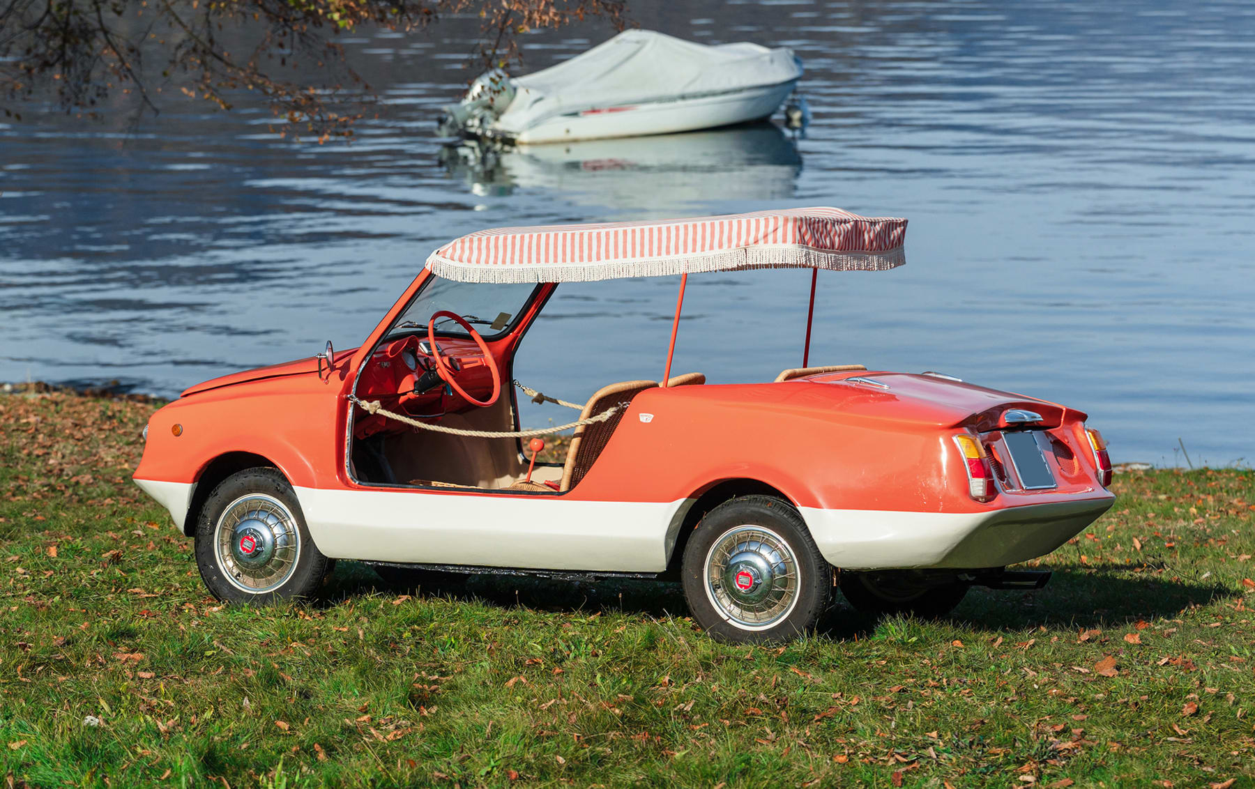 Among the most captivating interpretations of the Fiat 500 was the open-sided Sibona-Basano “Decathlon” Spiaggina, a rare and imaginative creation by the renowned Torino coachbuilder founded by former Ghia craftsmen Giovanni and Pietro Sibona and Walter Basano.