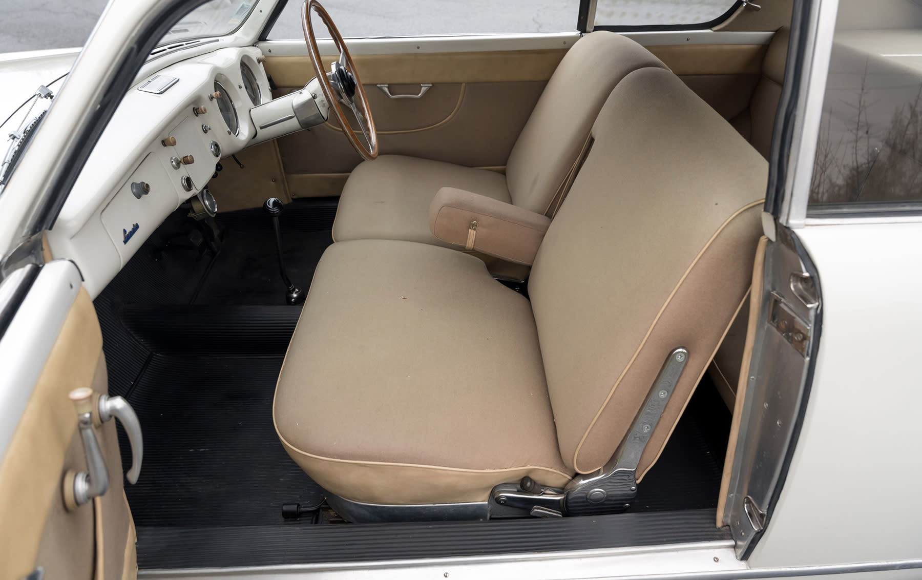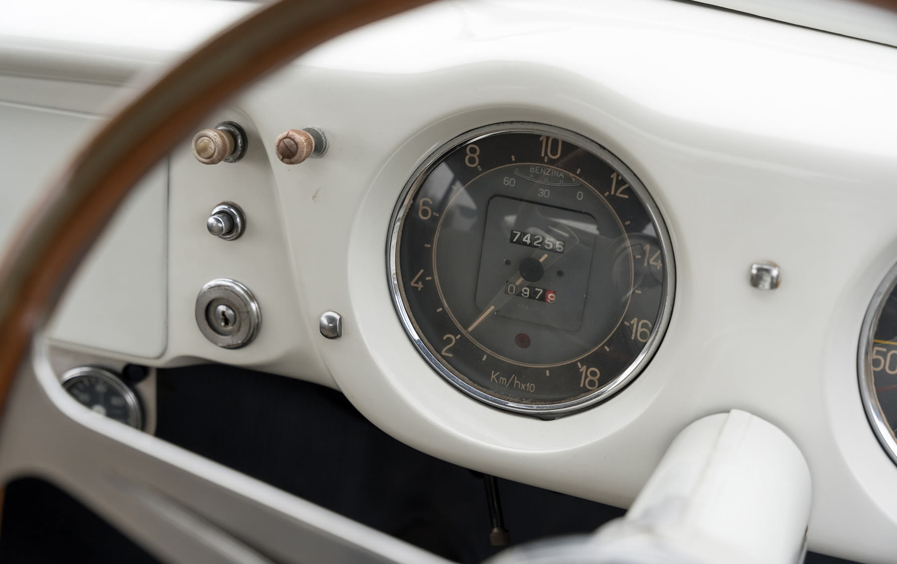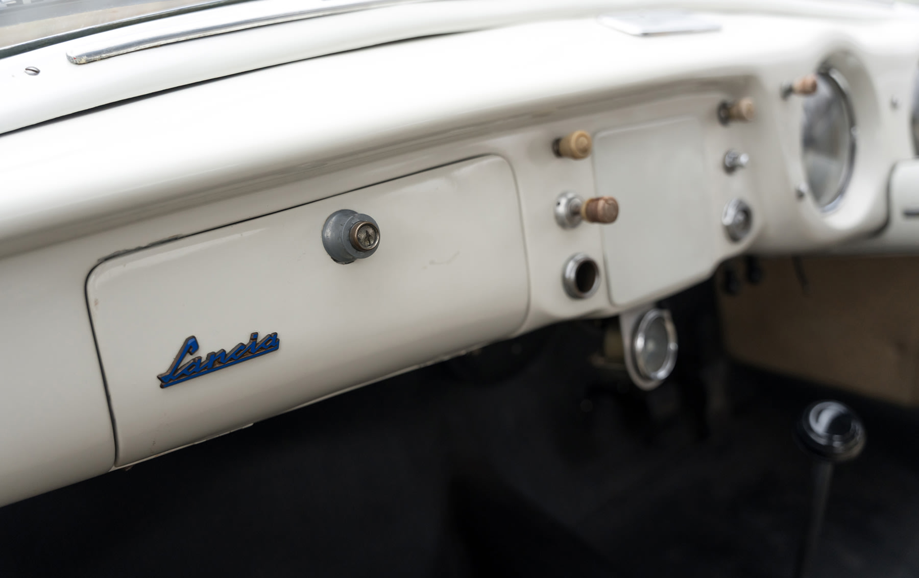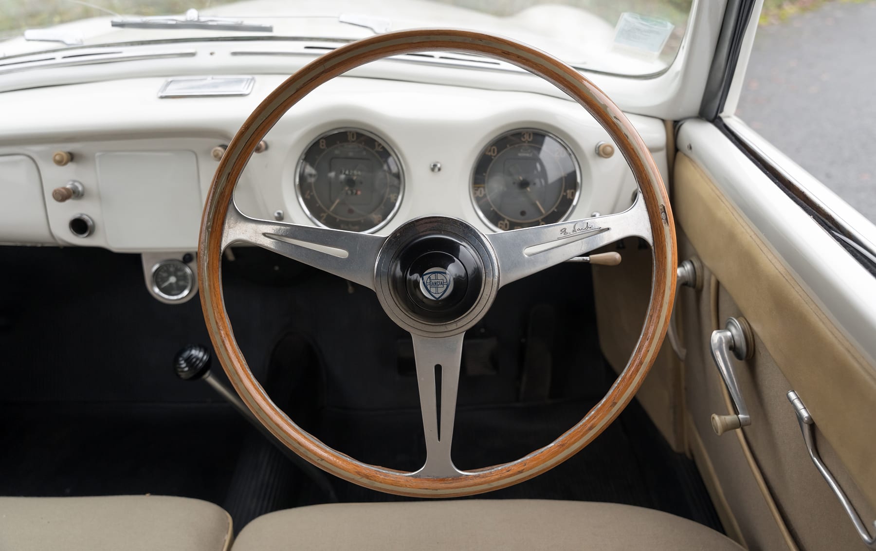 This second-series 1950s Lancia Aurelia B20 GT, an understated 2+2 coupe, is finished in cream with beige wool upholstery. It boasts state-of-the-art mechanical underpinnings and a successful motorsports history, making it an astute choice for any active collector.