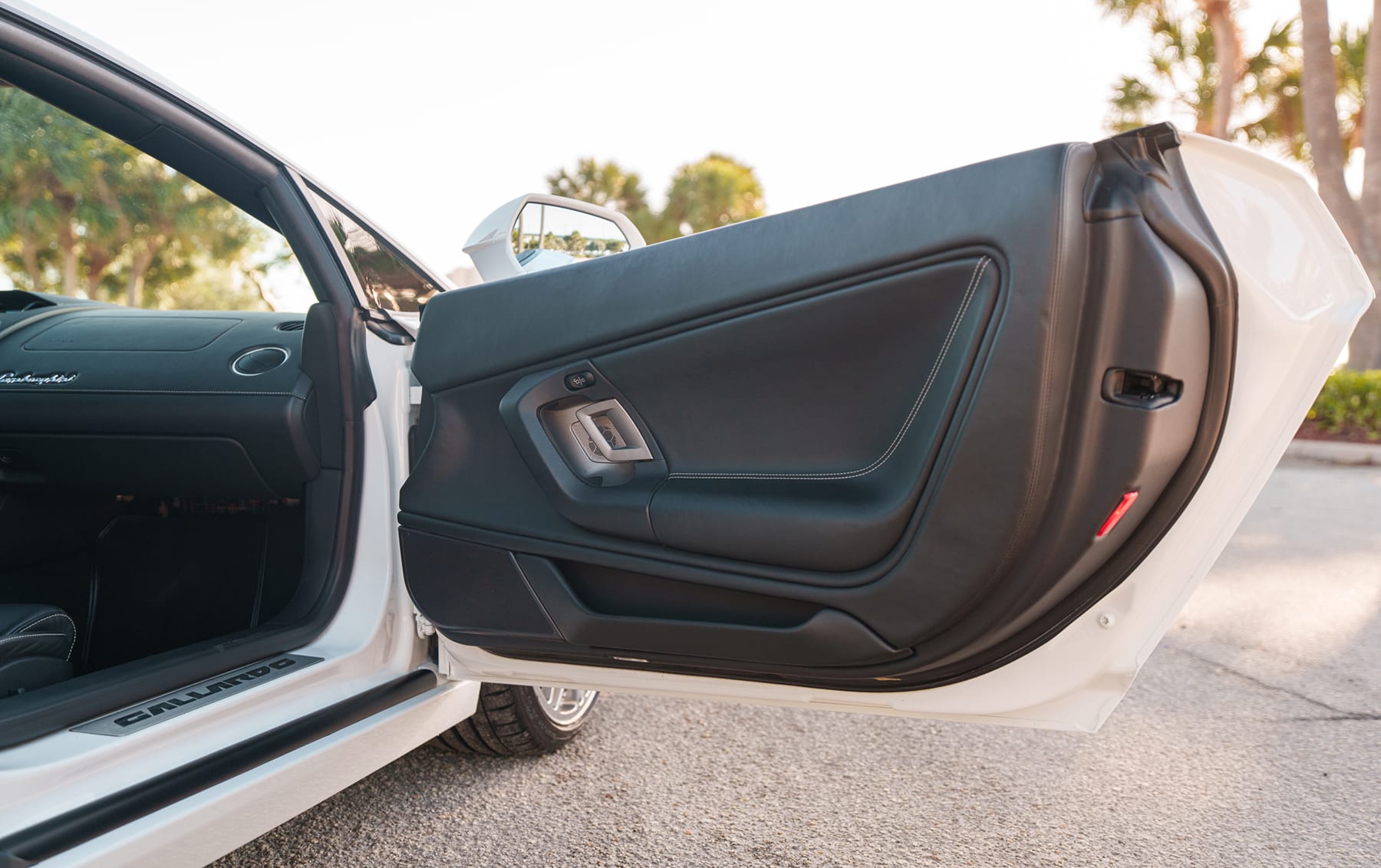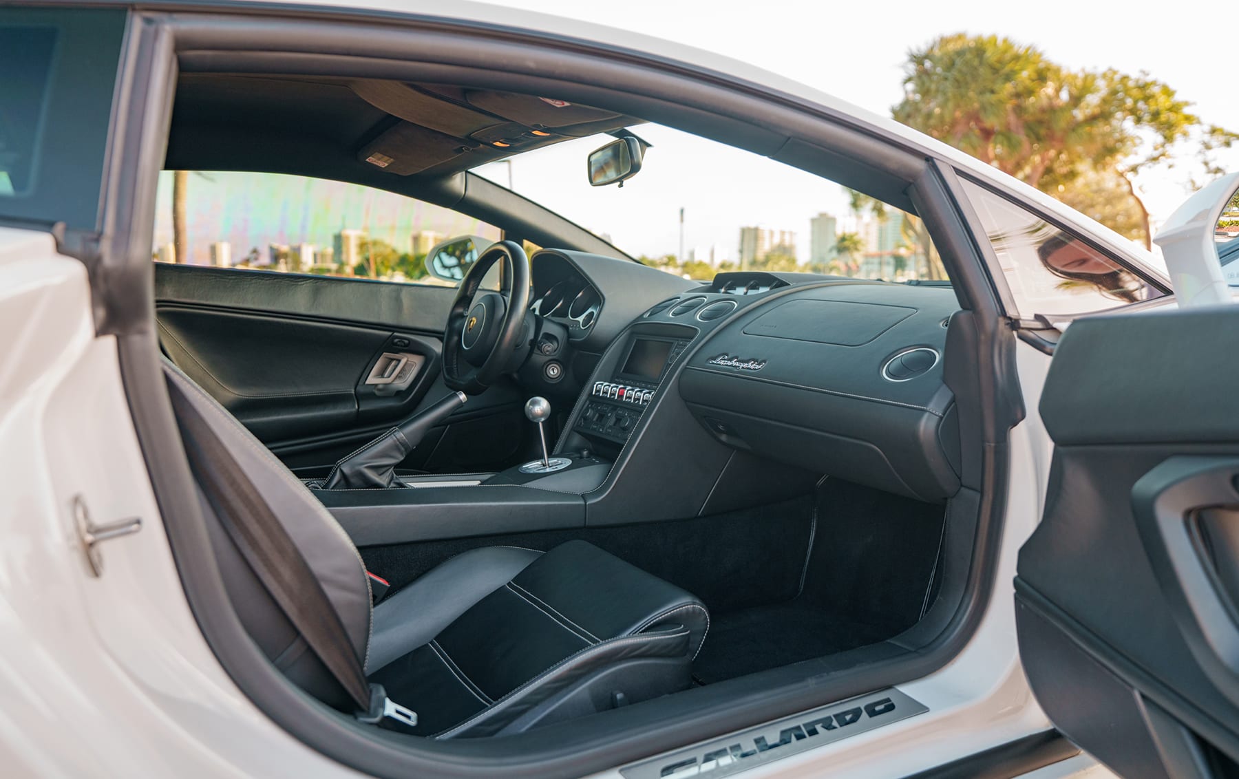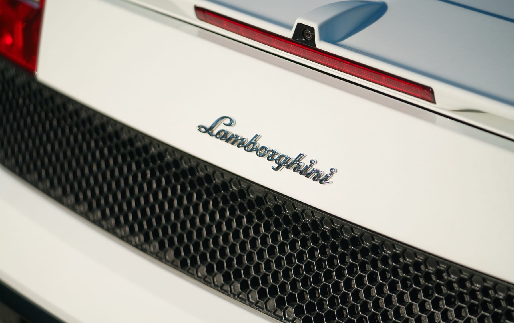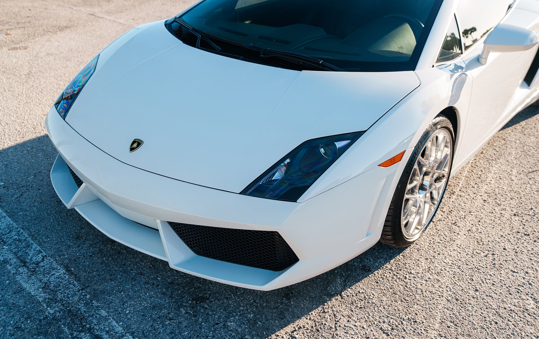 The Lamborghini was ordered in Bianco Monocerus (Monocerus White) with a Nero Perseus (Perseus Black) interior and specified with heated seats, front-axle lift, transparent engine cover, and rearview camera.