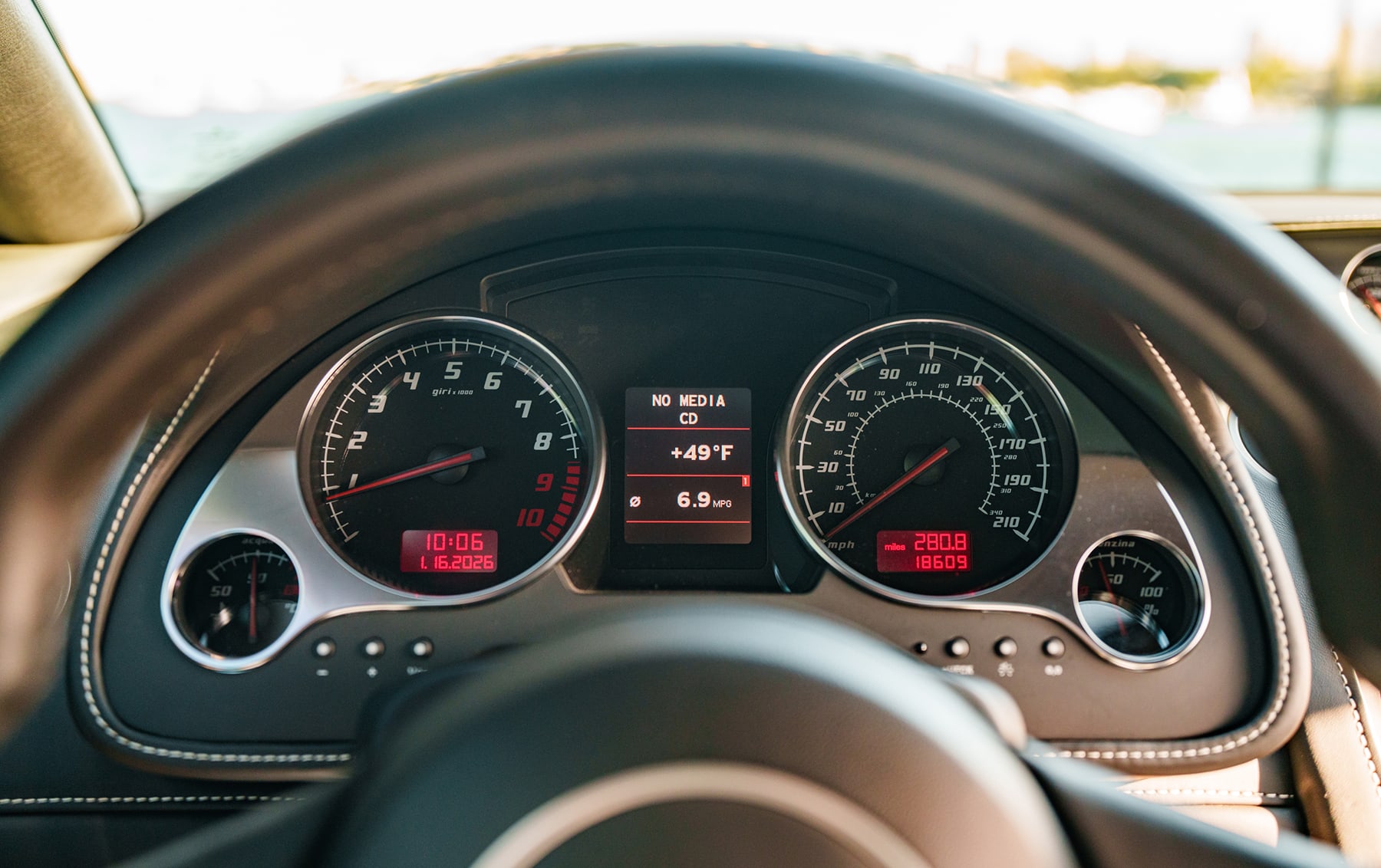 Inside, the cabin features contrasting Bianco Polar (Polar White) stitching and ergonomic driver-centric controls, balancing exotic flair with everyday usability.