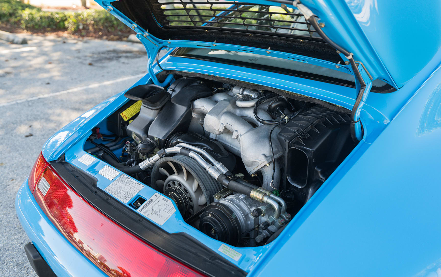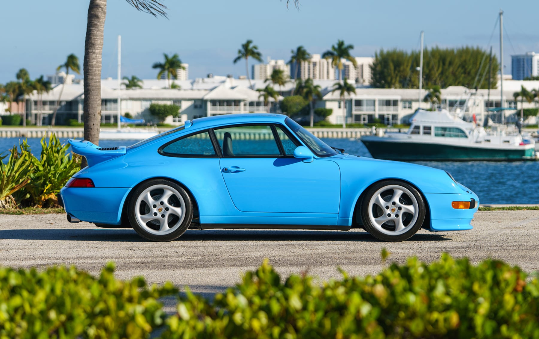 This stunning paint-to-sample Rivierablau (Riviera Blue) 993 Carrera is an exceptionally distinctive example of the final air-cooled 911.