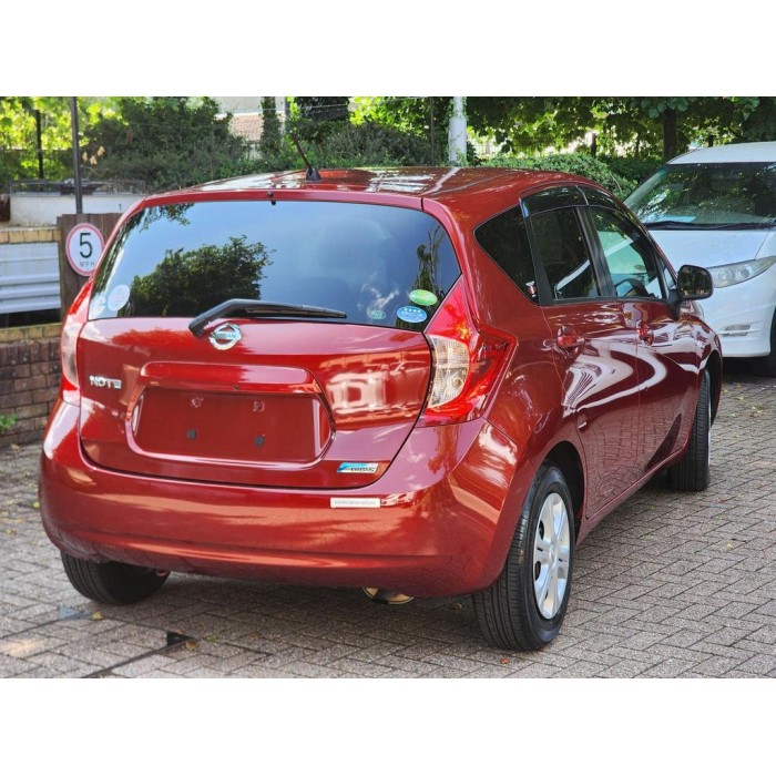 This is a 2014 Nissan Note 1.2L petrol automatic, a fresh Japanese import with low mileage and documentary proof. It has modern features like a reverse camera, Android/Apple Car Play, and comes with a warranty and breakdown cover.