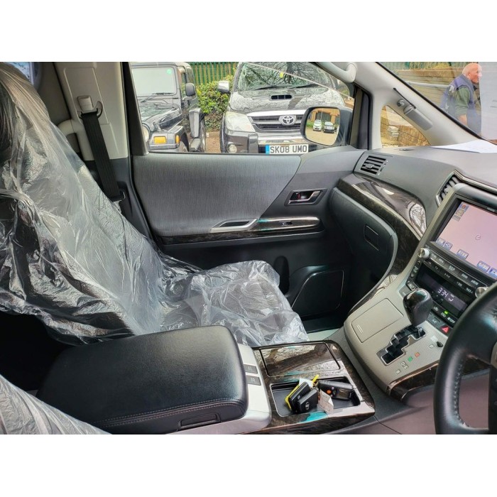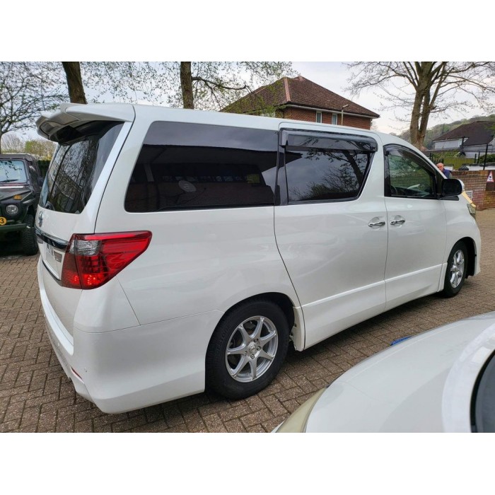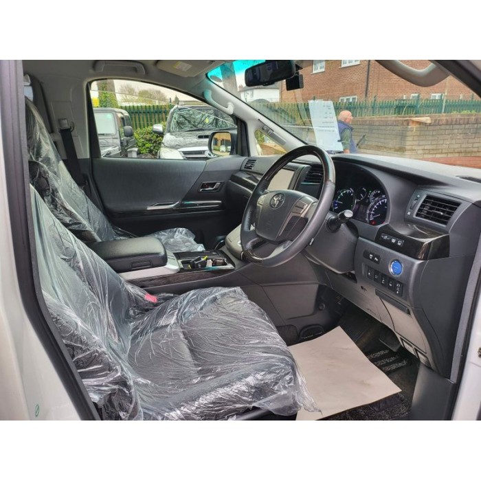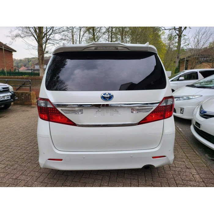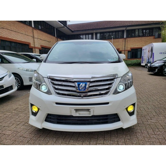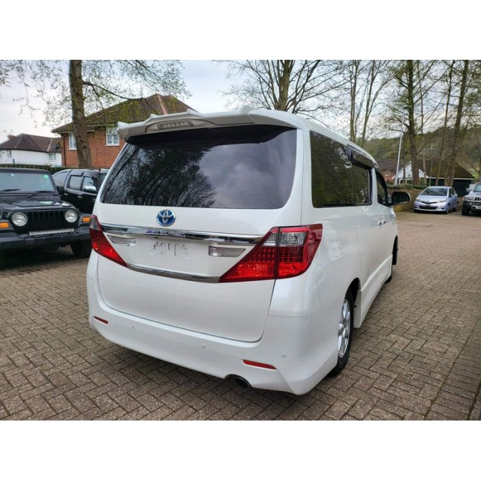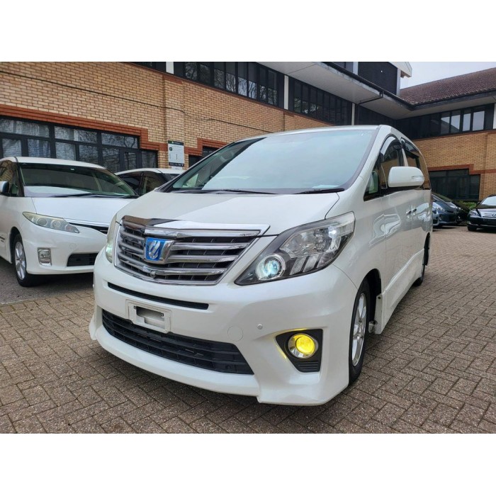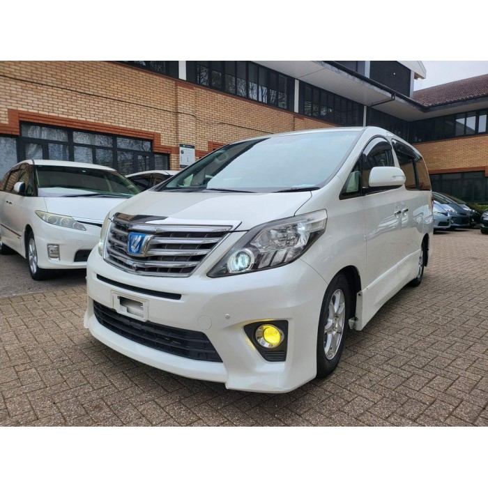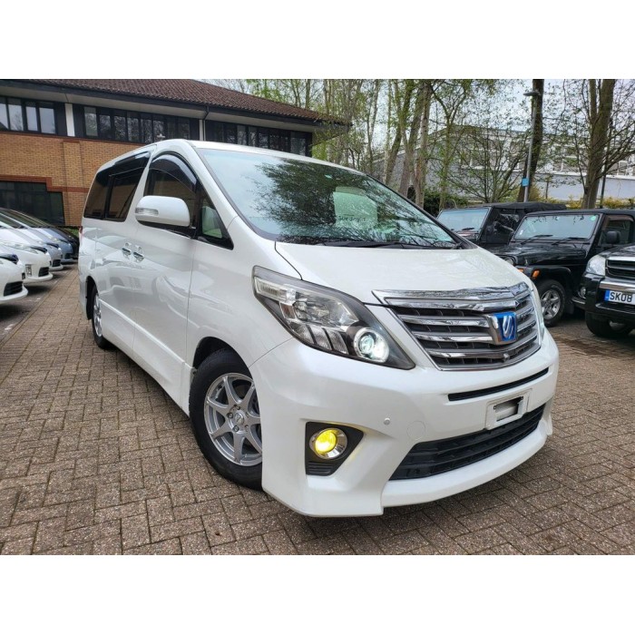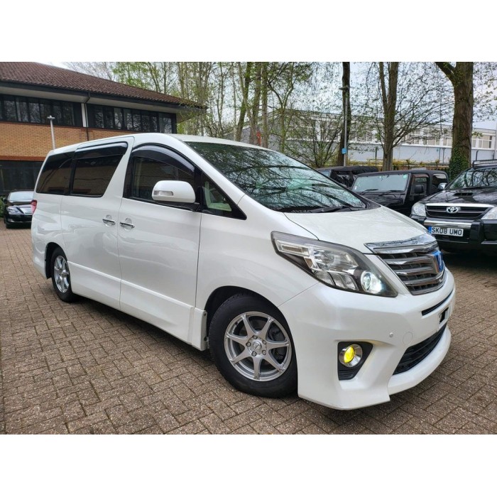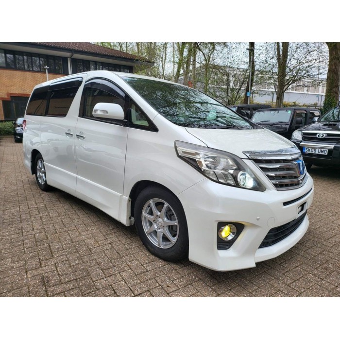 This is a 2012 Toyota Alphard 2.4L petrol hybrid, a fresh Japanese import with low mileage and 7 seats. It comes in metalic pearl white, boasts features like electric and memory seats, electric doors, reverse and surround cameras, and includes a 1 year MOT and 18 months warranty.