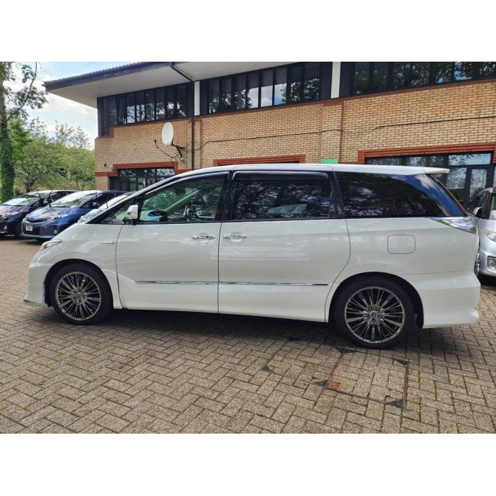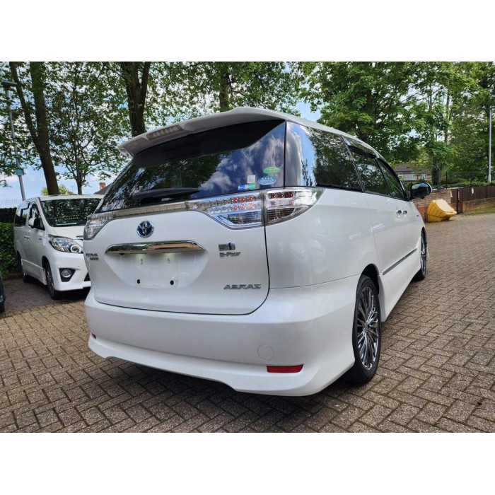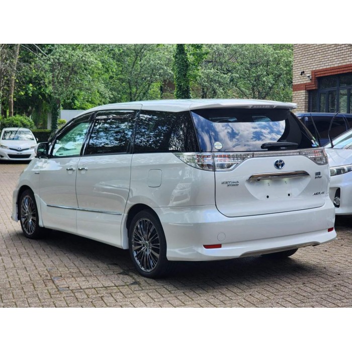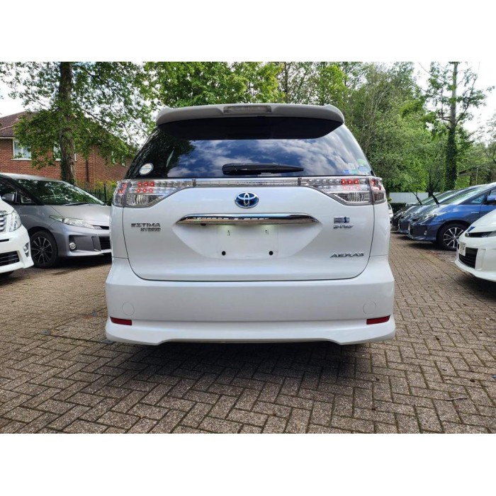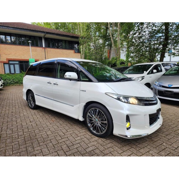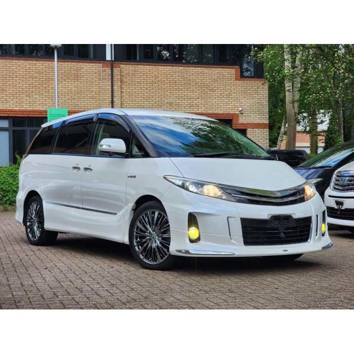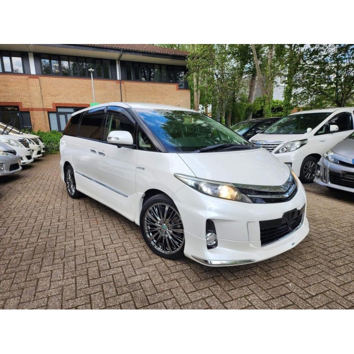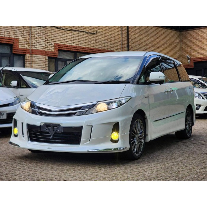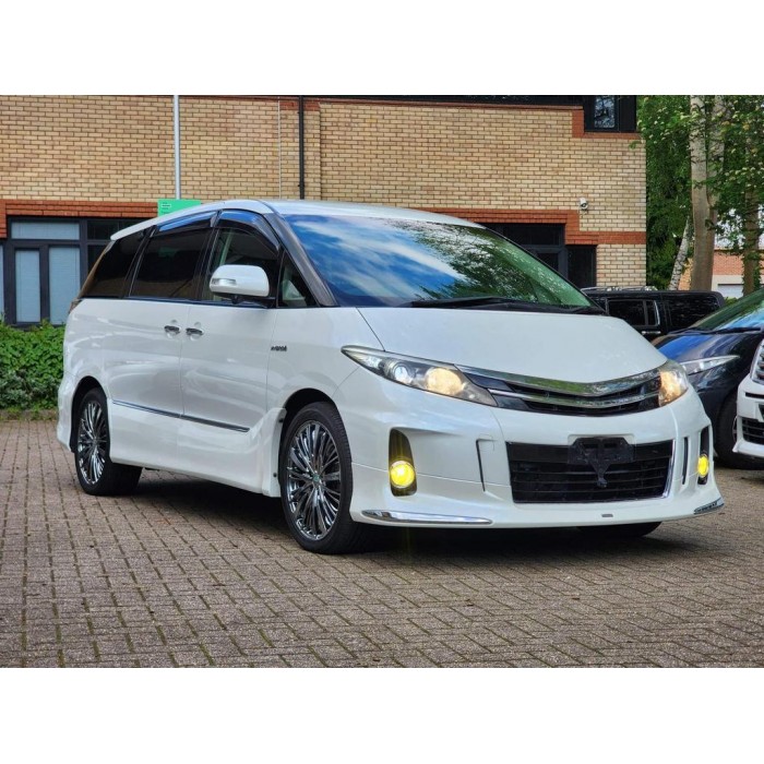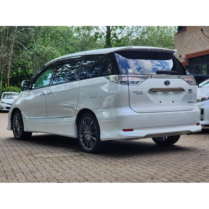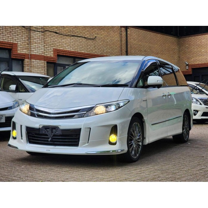 This is a fresh Japanese import 2013 Toyota Estima hybrid with a Modelista body kit, half leather seats, and upgraded entertainment. It comes with 18 months warranty and 1 year AA breakdown cover.