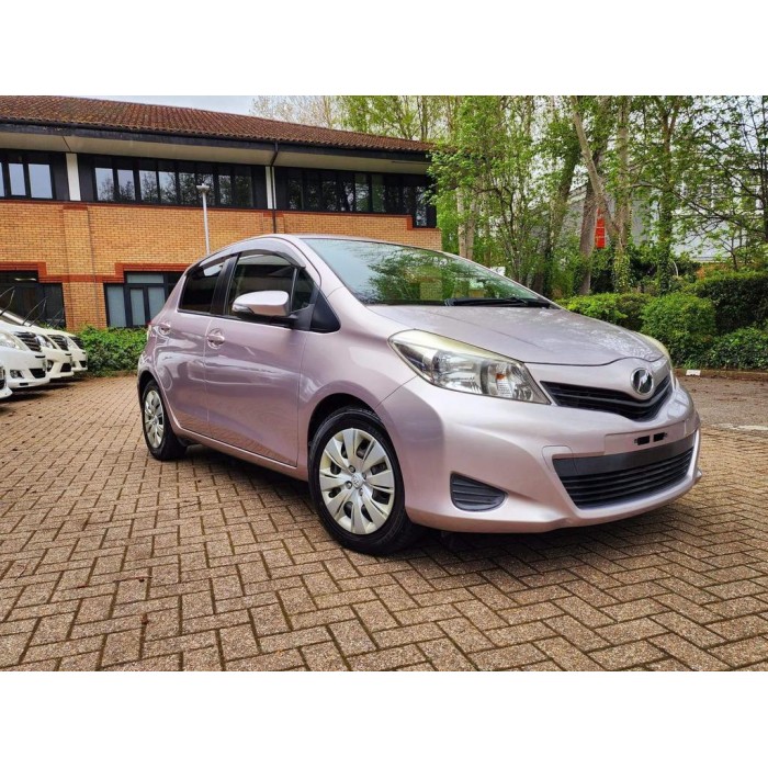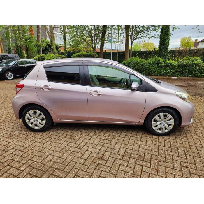 This 2012 Toyota Yaris is a fresh Japanese import with a 1.3L petrol engine and automatic transmission, featuring a unique metallic pink color. It boasts low mileage, recent servicing, a long MOT, and modern tech like a reverse camera and Android stereo.