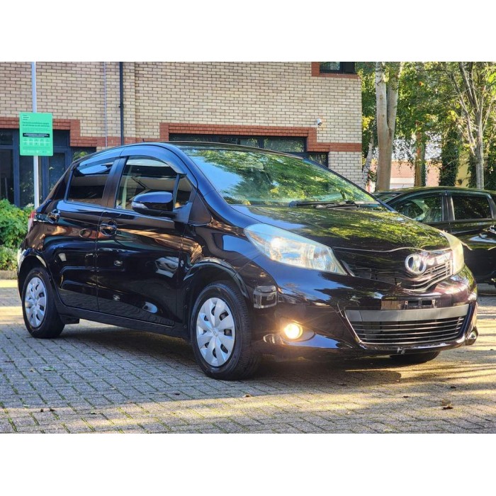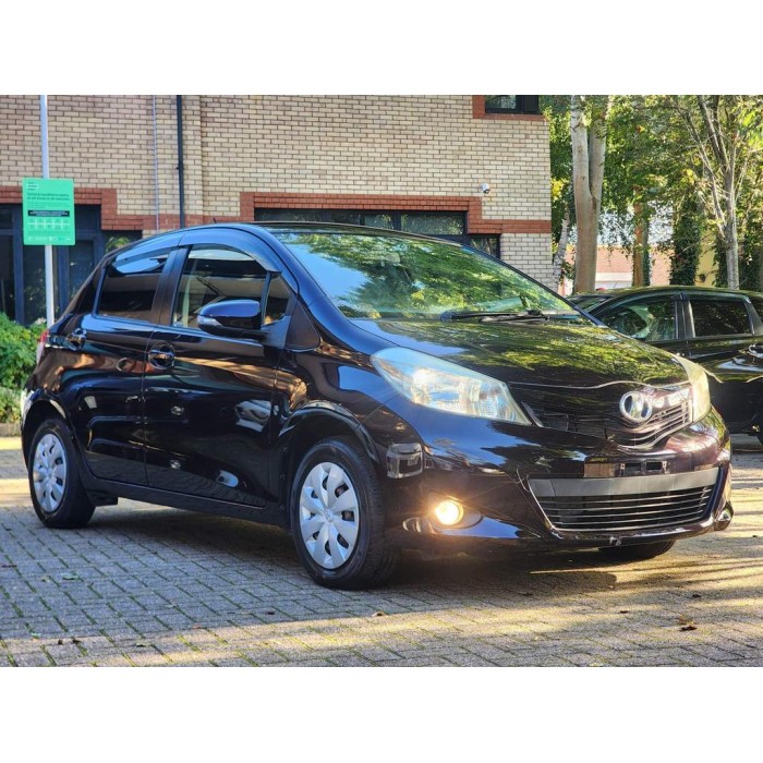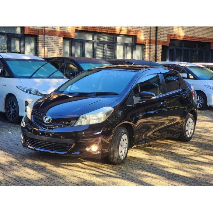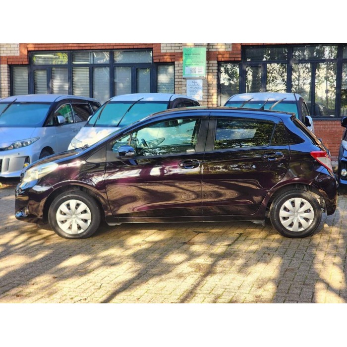This is a maroon 2013 Toyota Yaris with a 1.3L petrol automatic transmission. It's a fresh Japanese import with very low mileage, leather seats, and modern features.