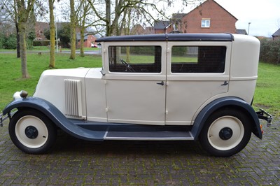 This 1929 Renault NN2 Saloon is a rare, UK-supplied, right-hand drive model that underwent a comprehensive body-off restoration in 2017. Finished in a striking white and black color scheme with a grey interior, it features a 951cc engine and a three-speed manual gearbox and is reported to be in very good condition.