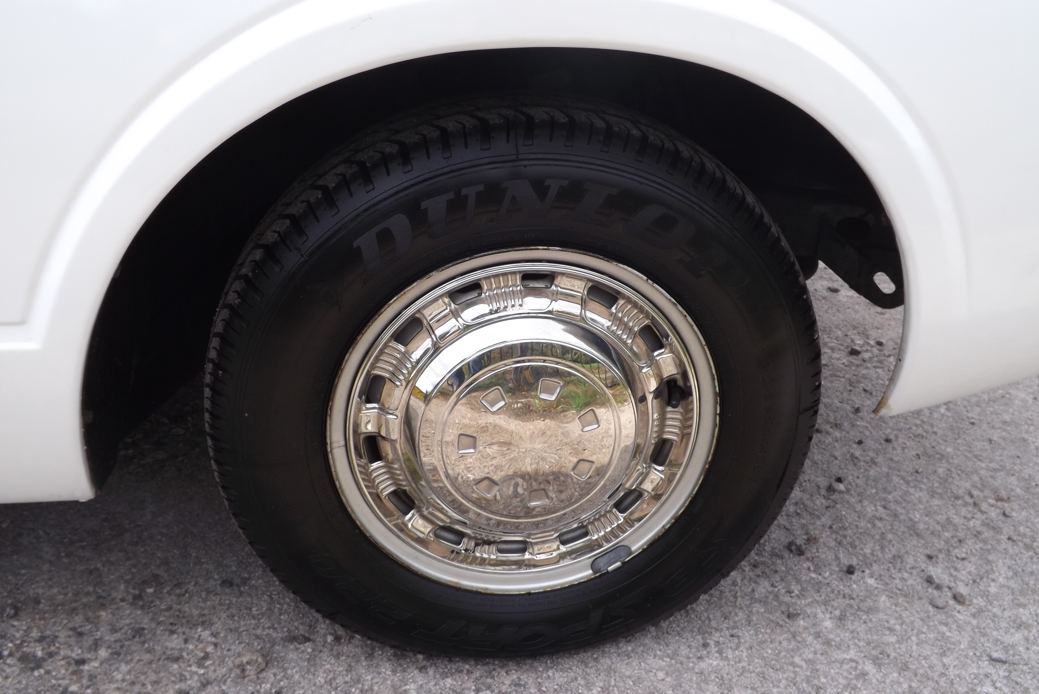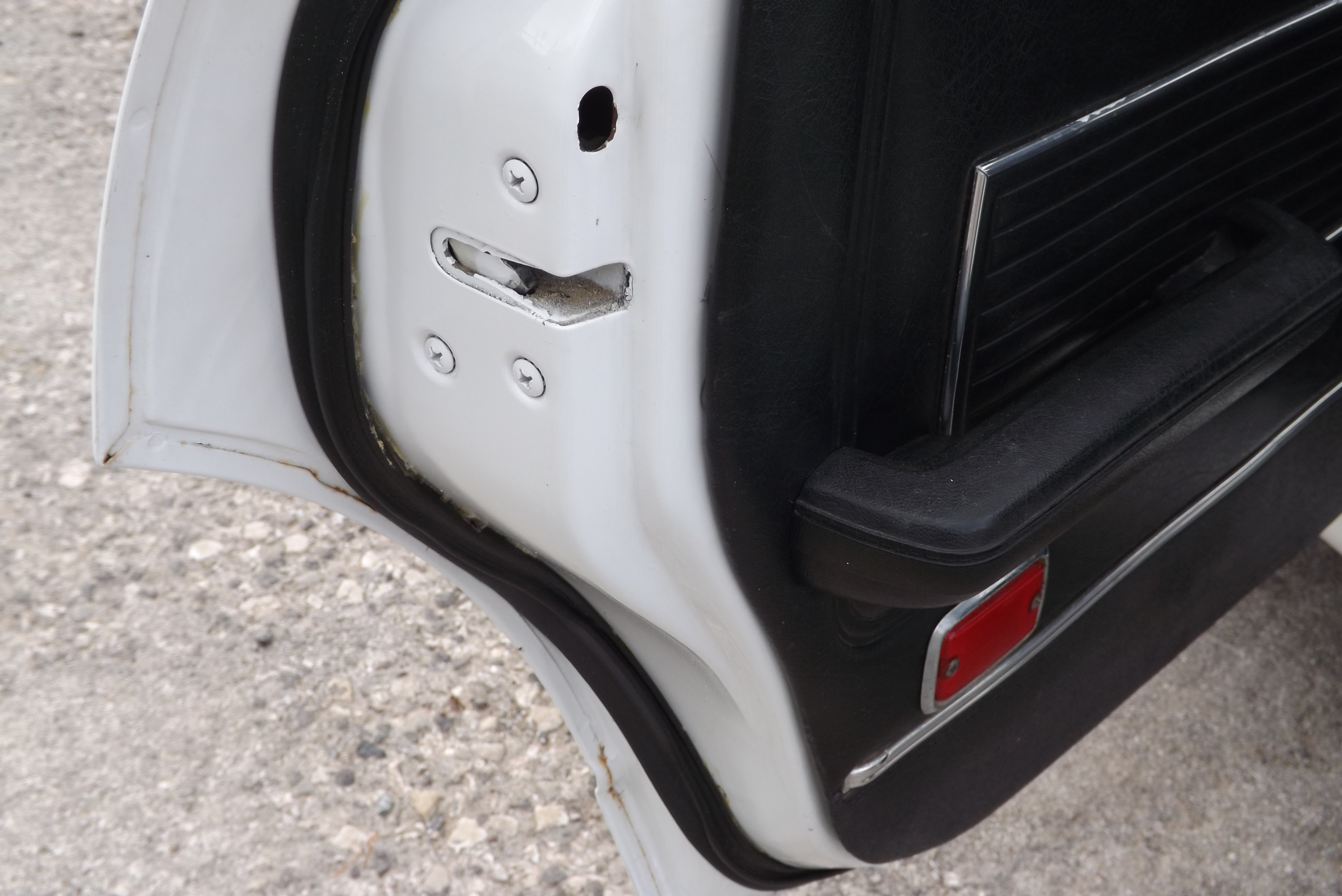 The car is described as being in good running order and in good condition underneath with solid sills and wheel arches. It recently completed a trouble-free run from London to Nottingham. It retains its original steel rims and hubcaps. However, it has an indicated c15,000 km and is finished in Toyota white with black vinyl interior, suggesting some wear is present.