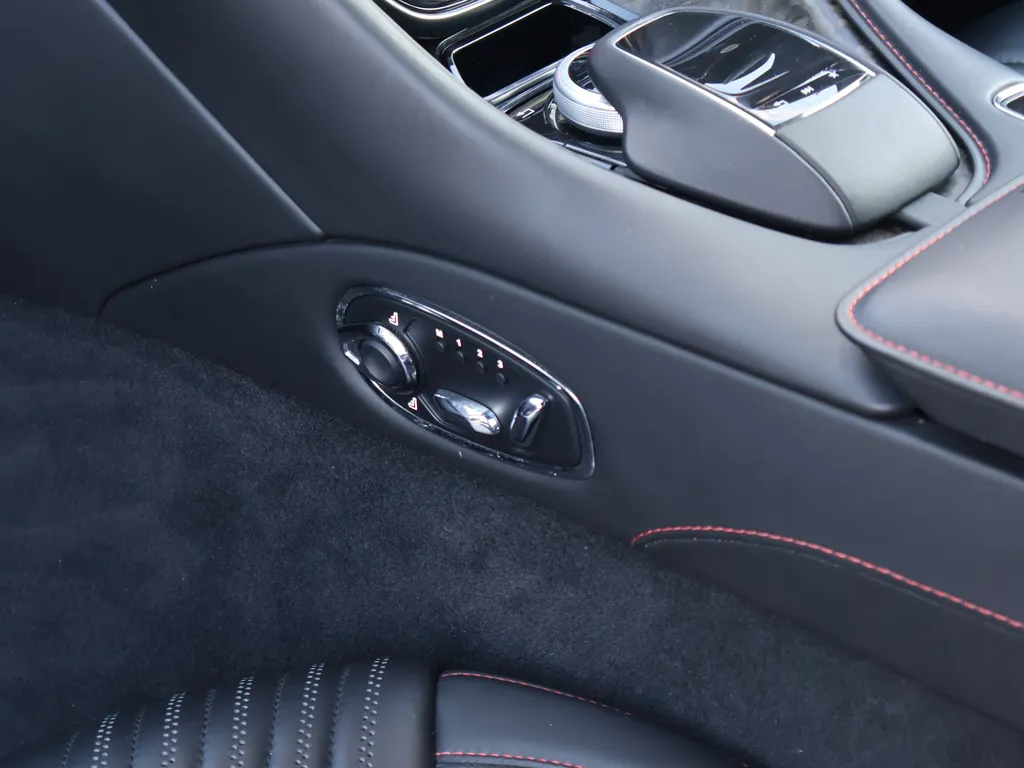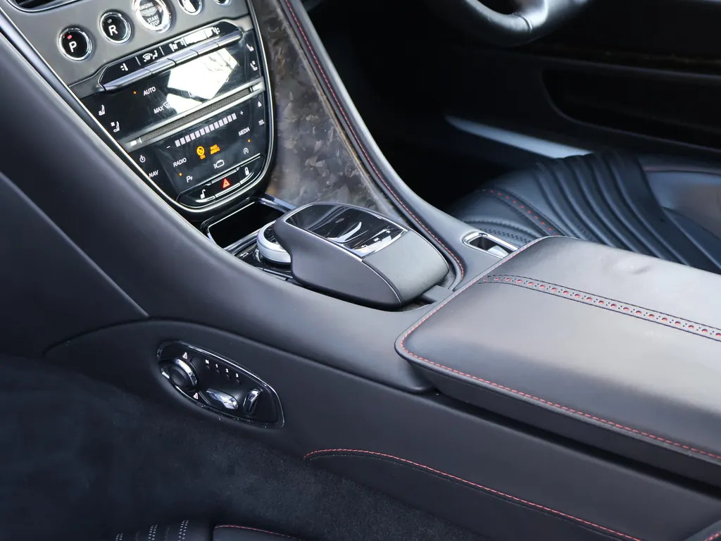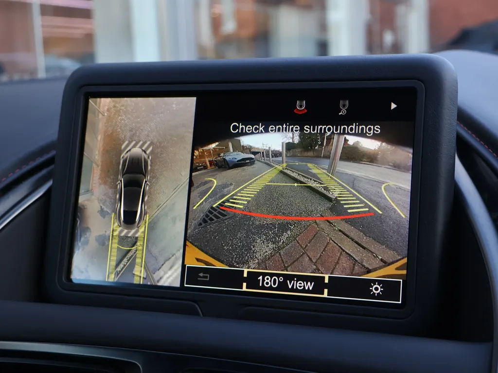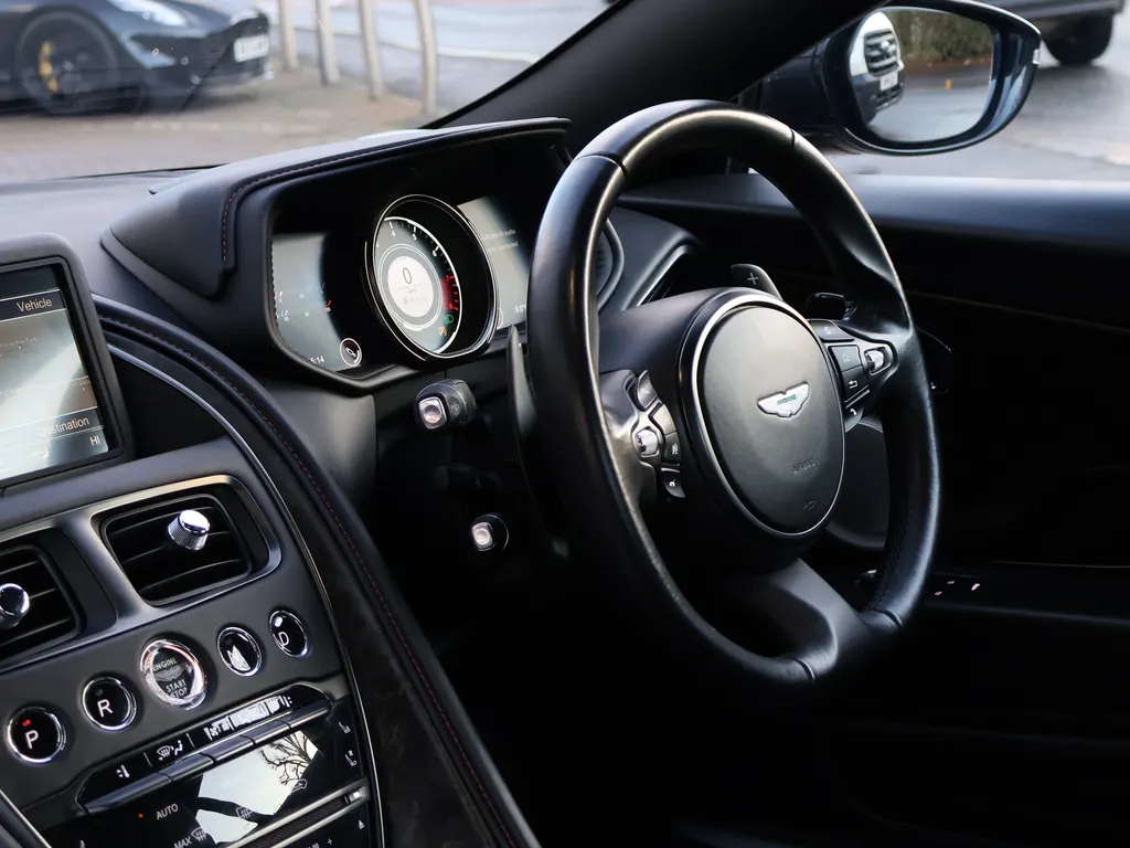 This particular Aston Martin is finished in Ultramarine Black with an Obsidian Black Leather Interior complemented by Spicy Red Stitching.This vehicle comes equipped with a whole host of standard and optional refinements including Bang & Olufsen Beosound Audio, Bright Bonnet Blades, Red Brake Calipers, Black Body...