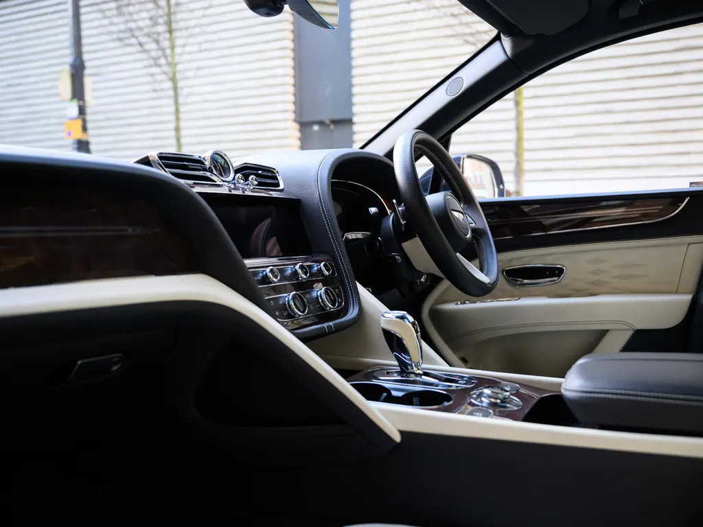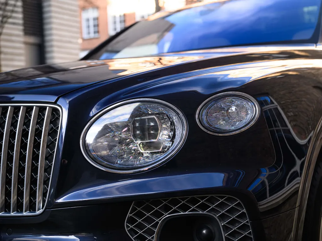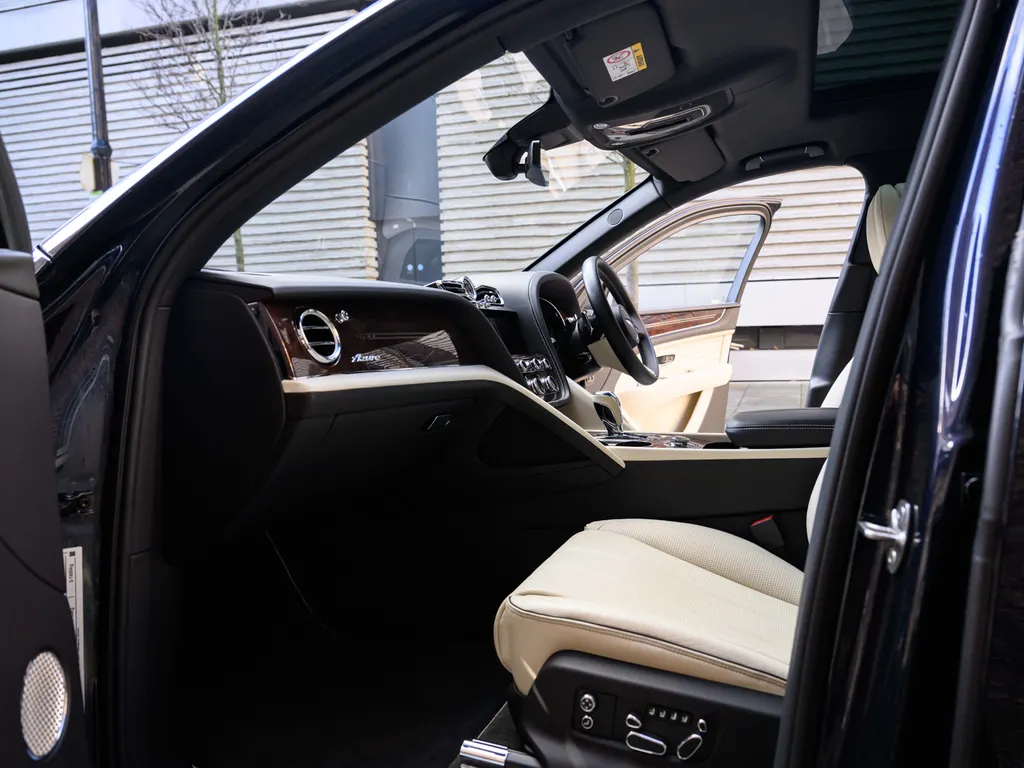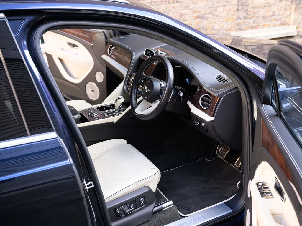 In the heart of Mayfair, Jack Barclay presents a 2023 Bentayga EWB in elegant Dark Sapphire with Linen interior, a truly big-spec example of Bentley's most luxurious SUV.