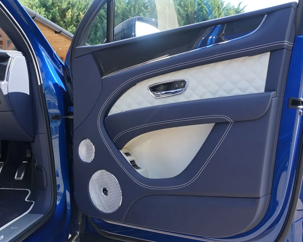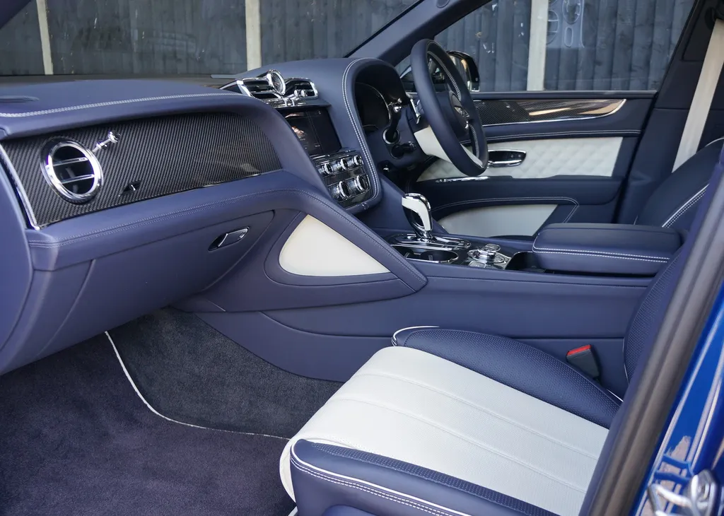 Bentley Surrey are pleased to offer this Bentley Bentayga V8 S finished in Extended Range Sequin blue with Linen and Imperial blue quilted hide.In addition to a very generous standard level of equipment this Bentley was factory built with the following high specification and additional options; 22 S Directional wheels in polished and gloss black, Diamond quilt leather specification, Contrast ...