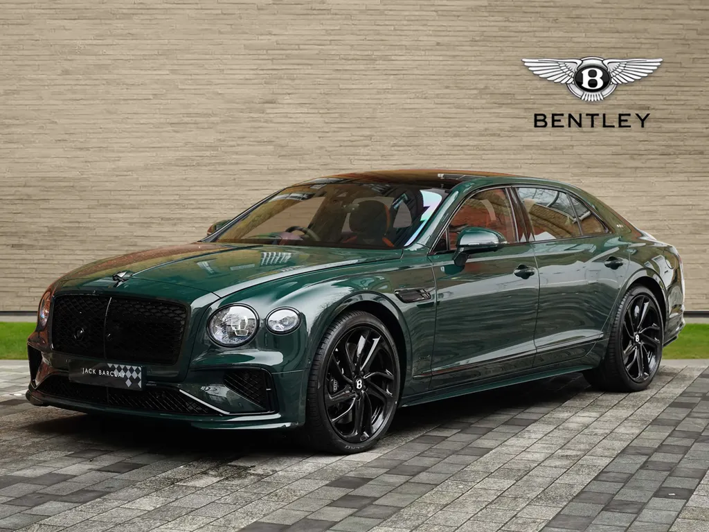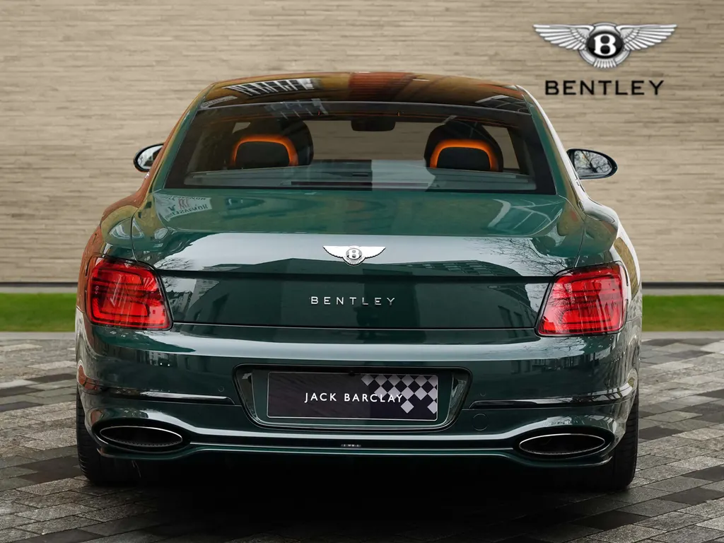 This is a 2025 Bentley Flying Spur First Edition, presented by Jack Barclay in Mayfair. It features a Barnato finish, bespoke detailing and cutting-edge technology.