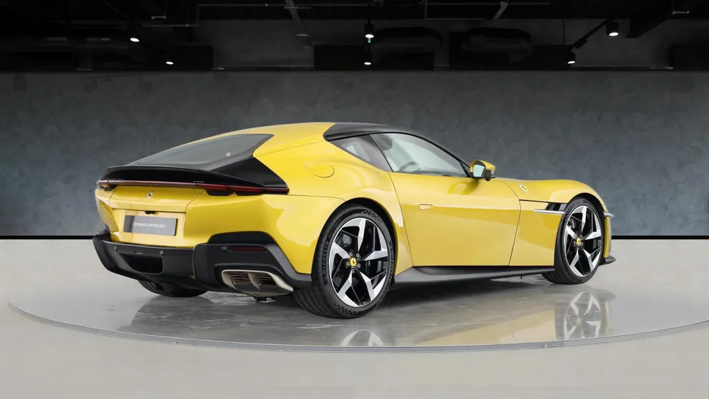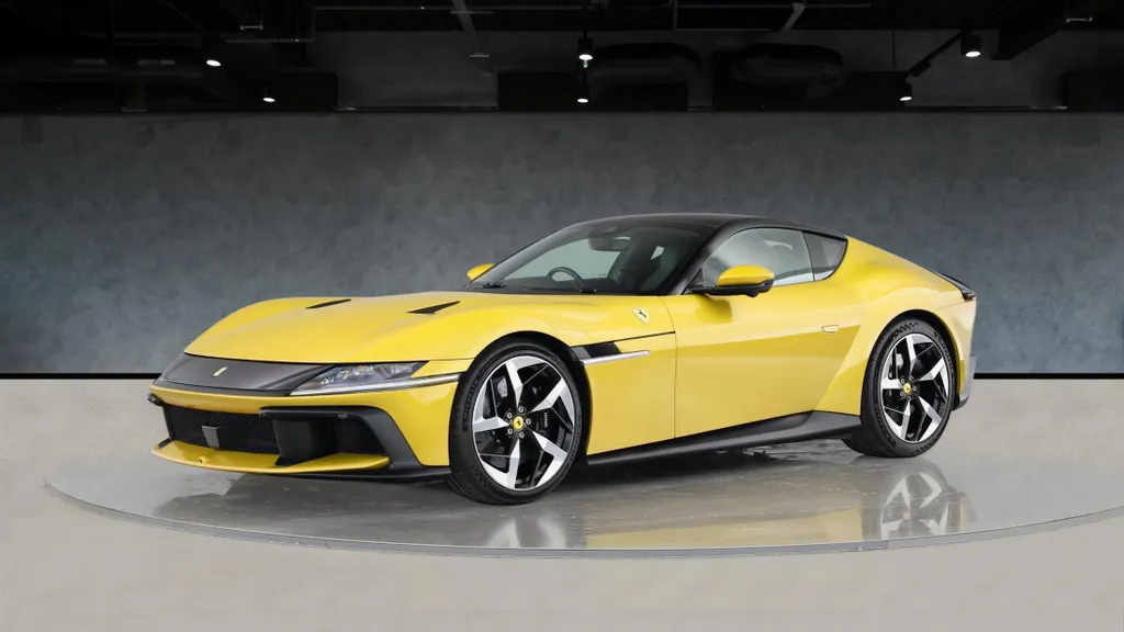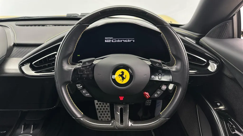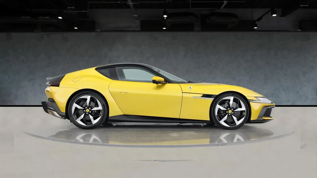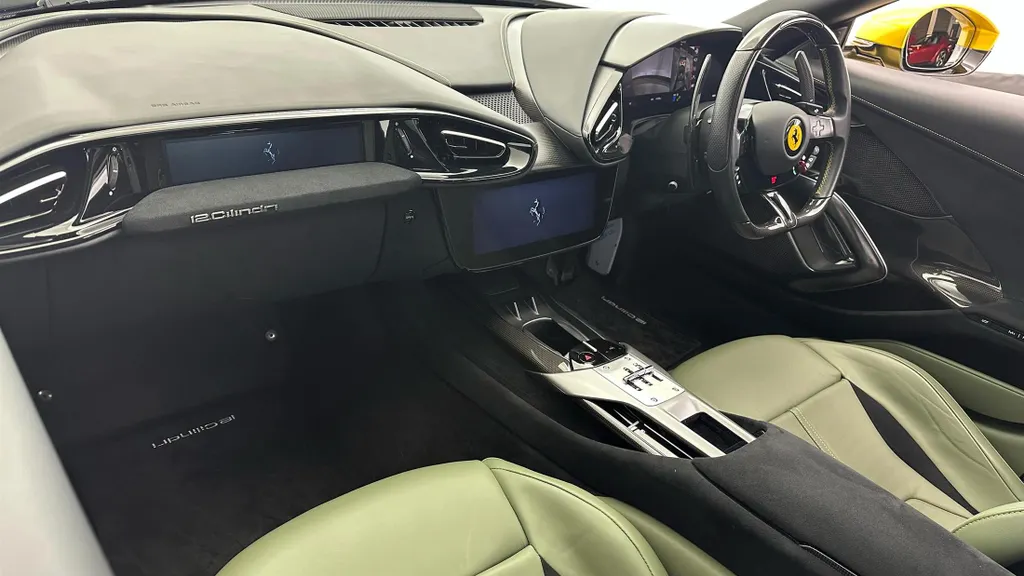 This Ferrari 12cilindri, registered in 2025, is a yellow coupe with 4728 miles. Located in London, it's priced at £359,000.