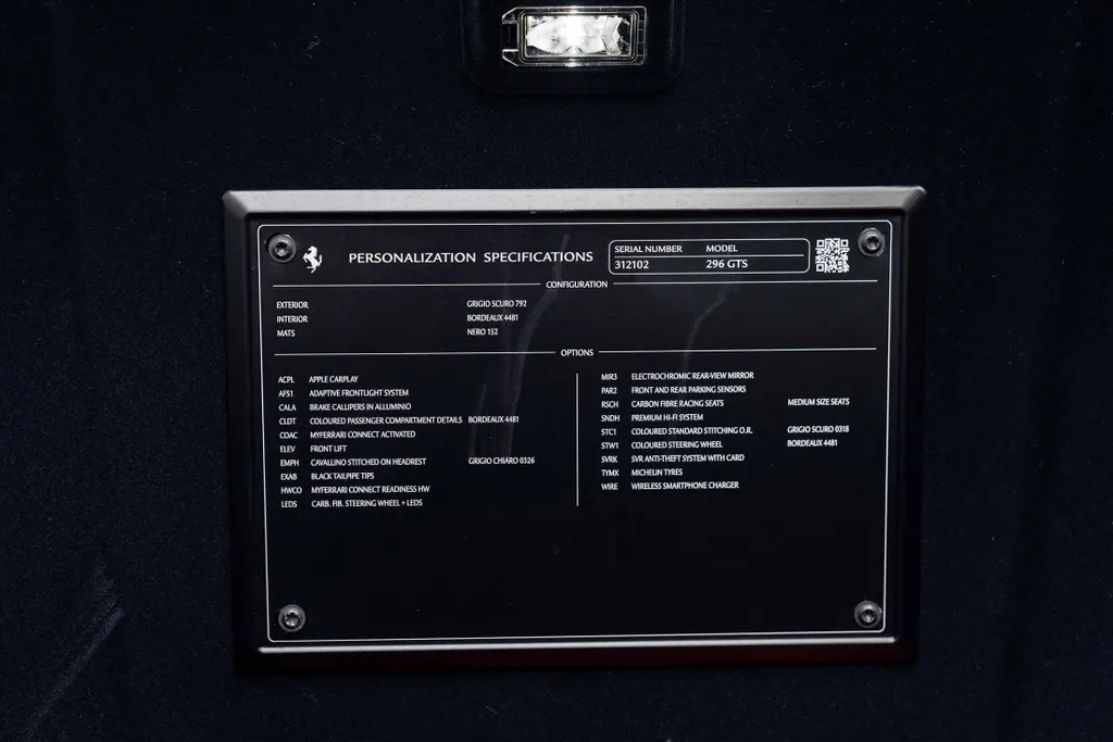 The ''296'' refers to its 2.9-liter V6 engine, and ''GTS'' stands for Gran Turismo Spider, highlighting its open-top grand touring character.