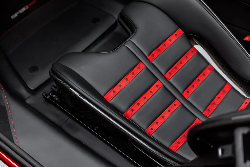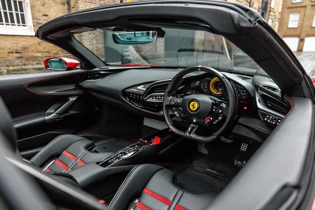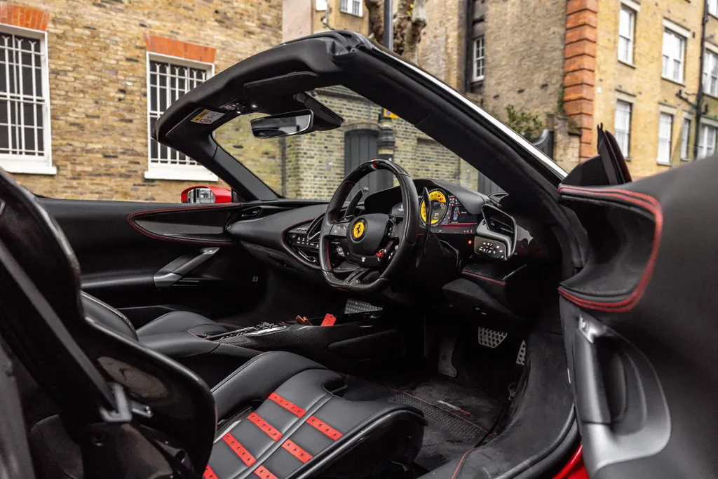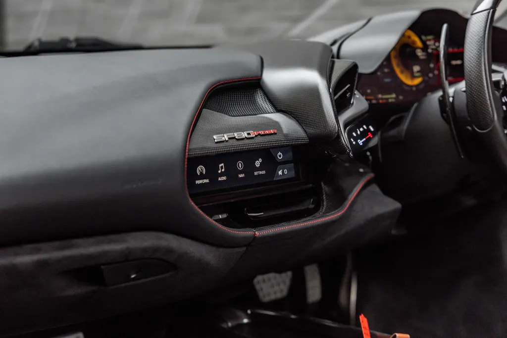 Finished in the breath taking Rosso Fuoco with a Nero hide interior, this Ferrari SF90 Spider represents the pinnacle of Ferrari's hybrid open-top performance.