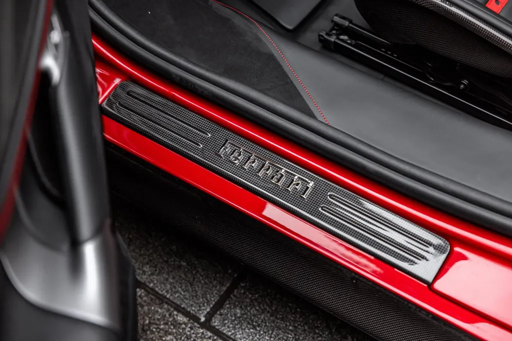 Owen Ferrari London and showing just 5,850 miles from its sole owner, this example is presented in outstanding condition with an exceptional factory specification.The exterior is defined by extensive gloss carbon fi...