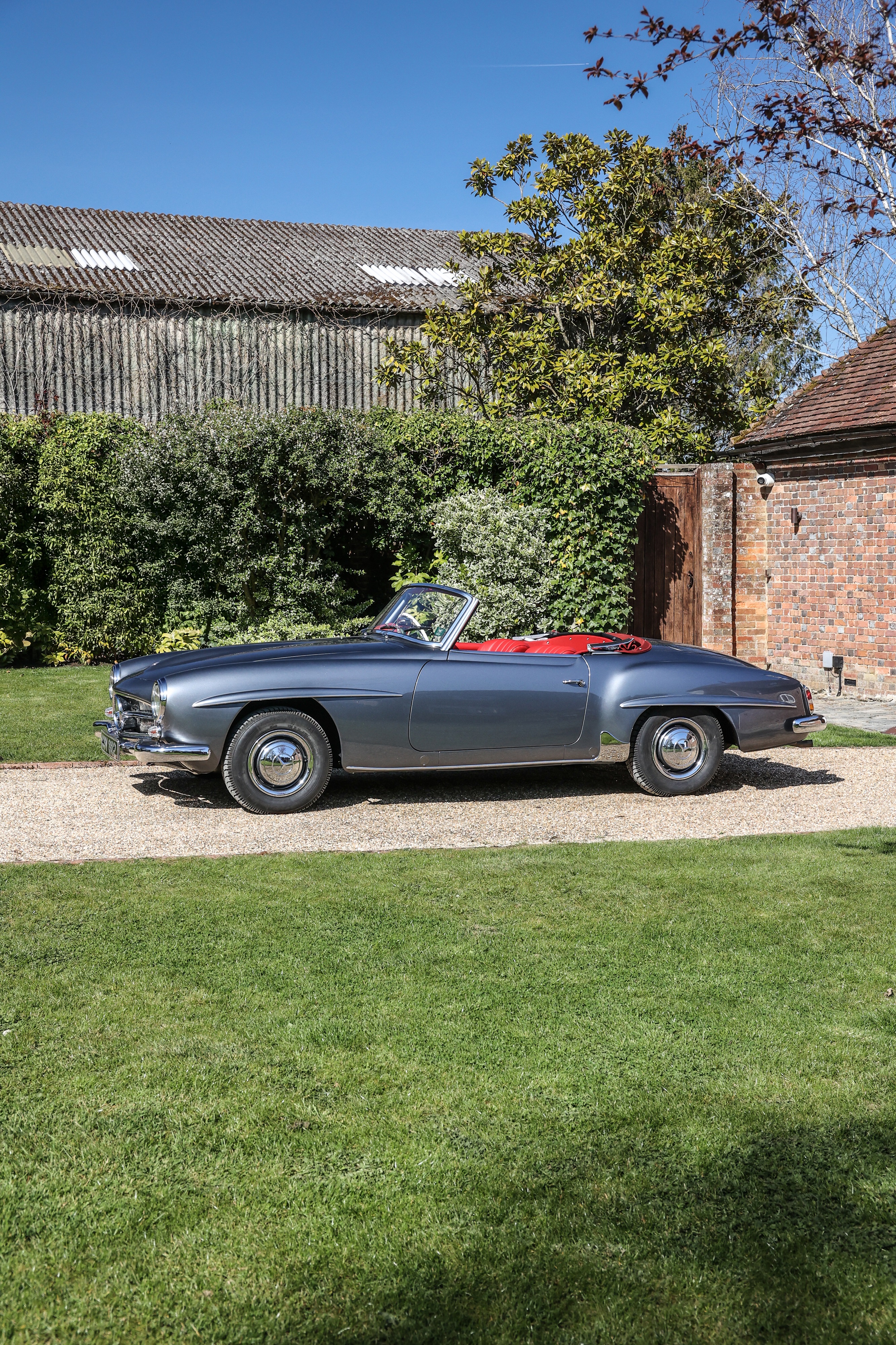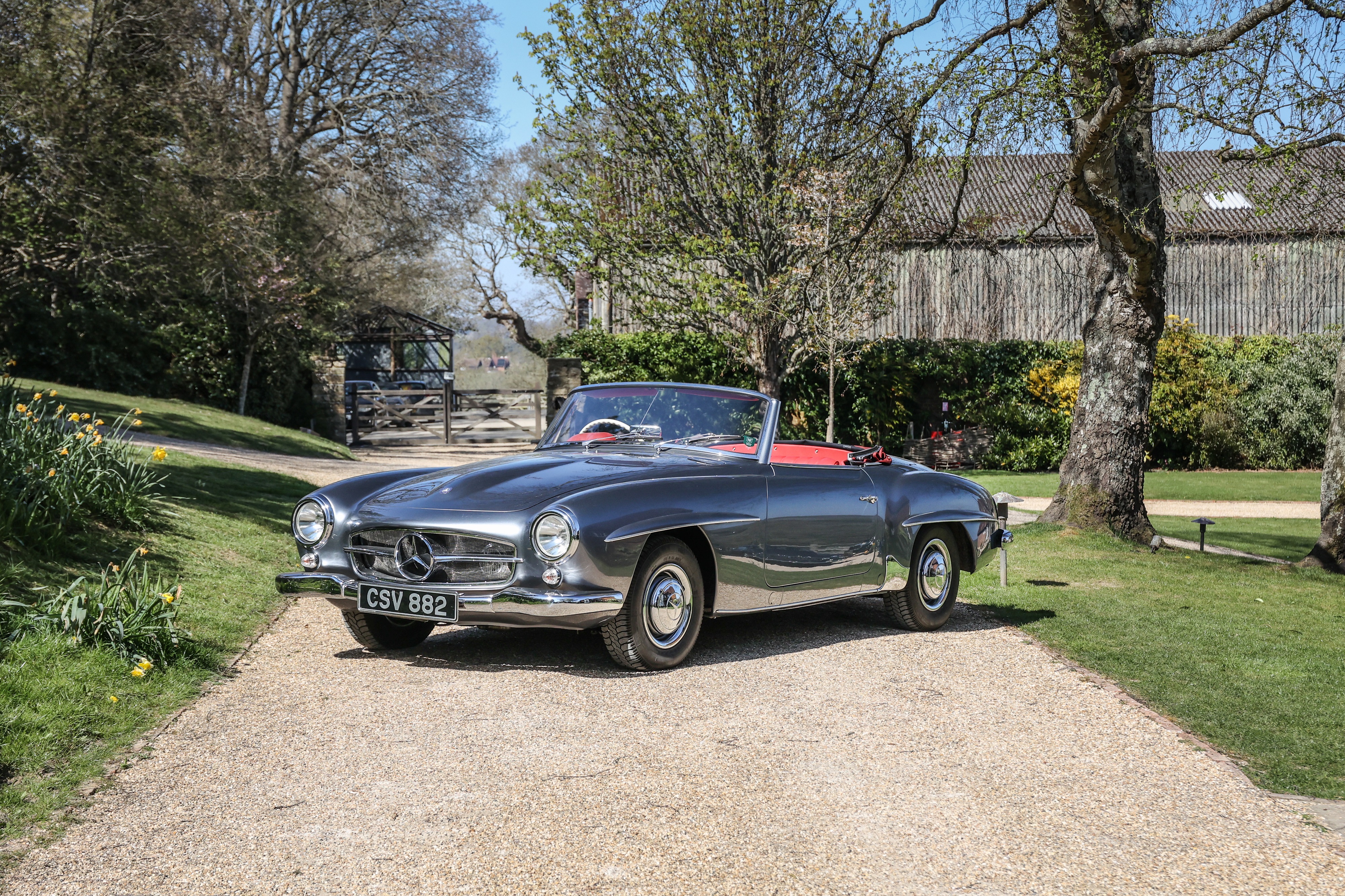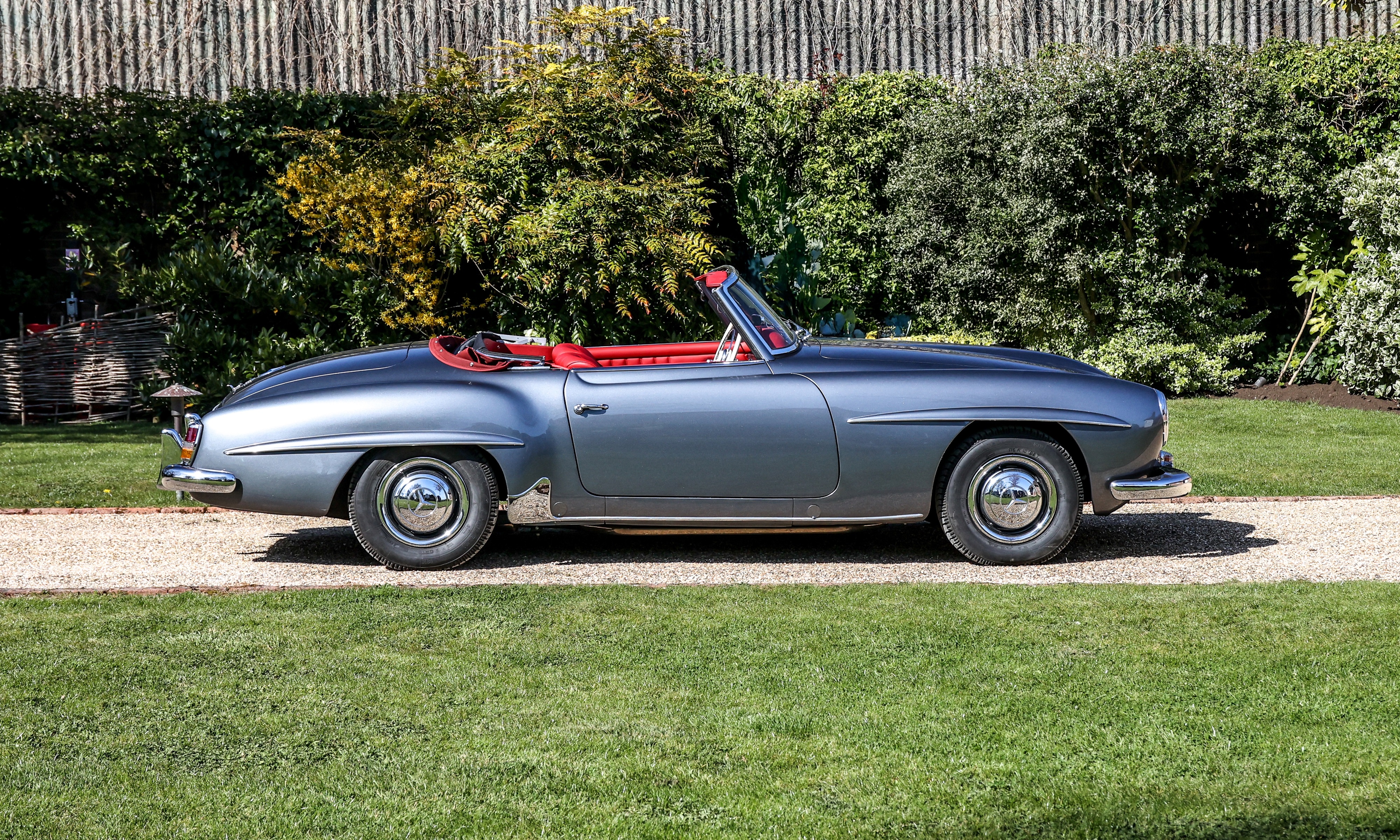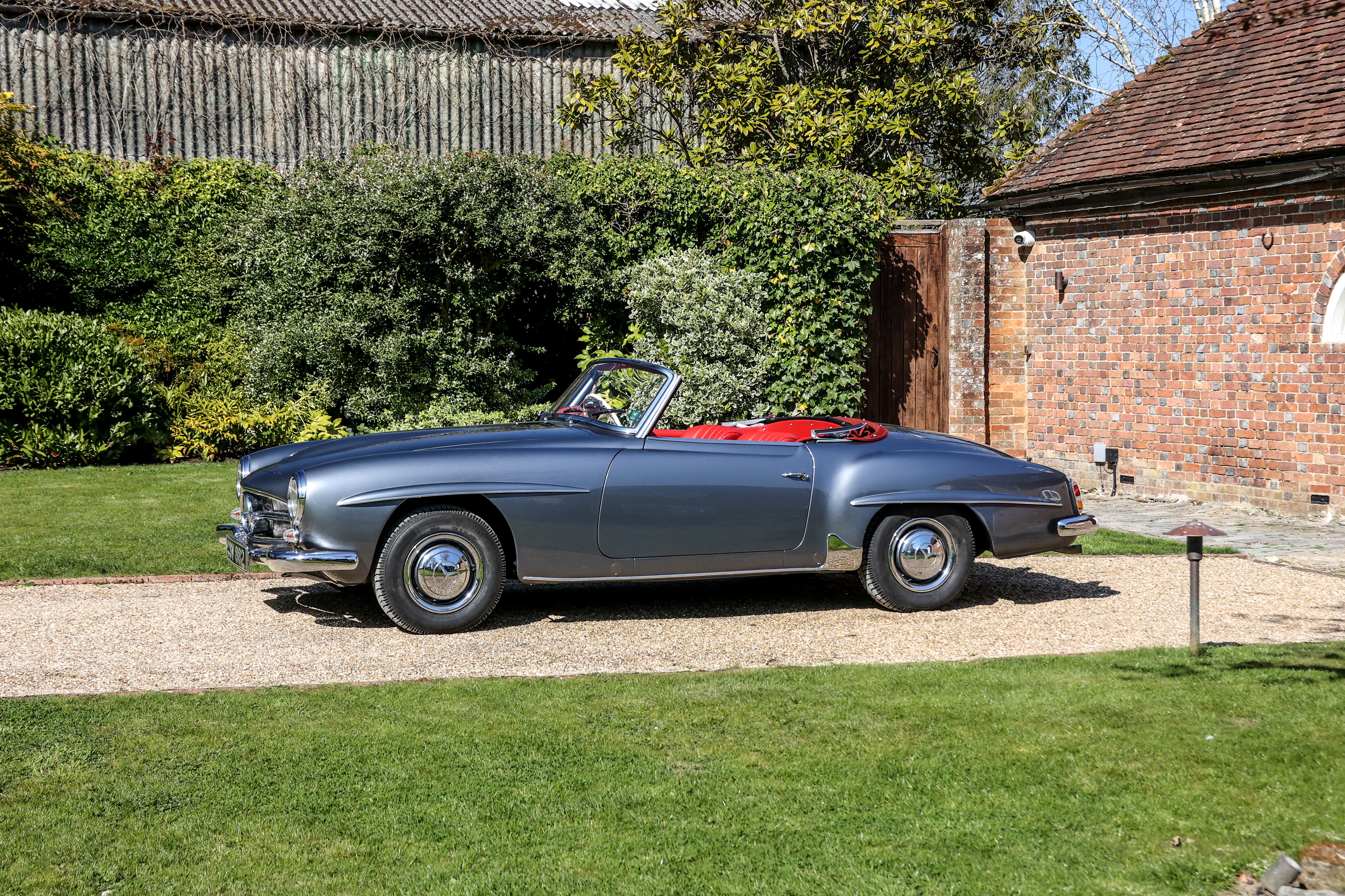 This 1962 Mercedes-Benz 190 SL has been fully rebuilt by Desmond Smail, costing £140,000. Finished in metallic grey with a red leather interior and Oxblood hood, the engine, gearbox and body were also rebuilt. The chrome has been restored throughout.