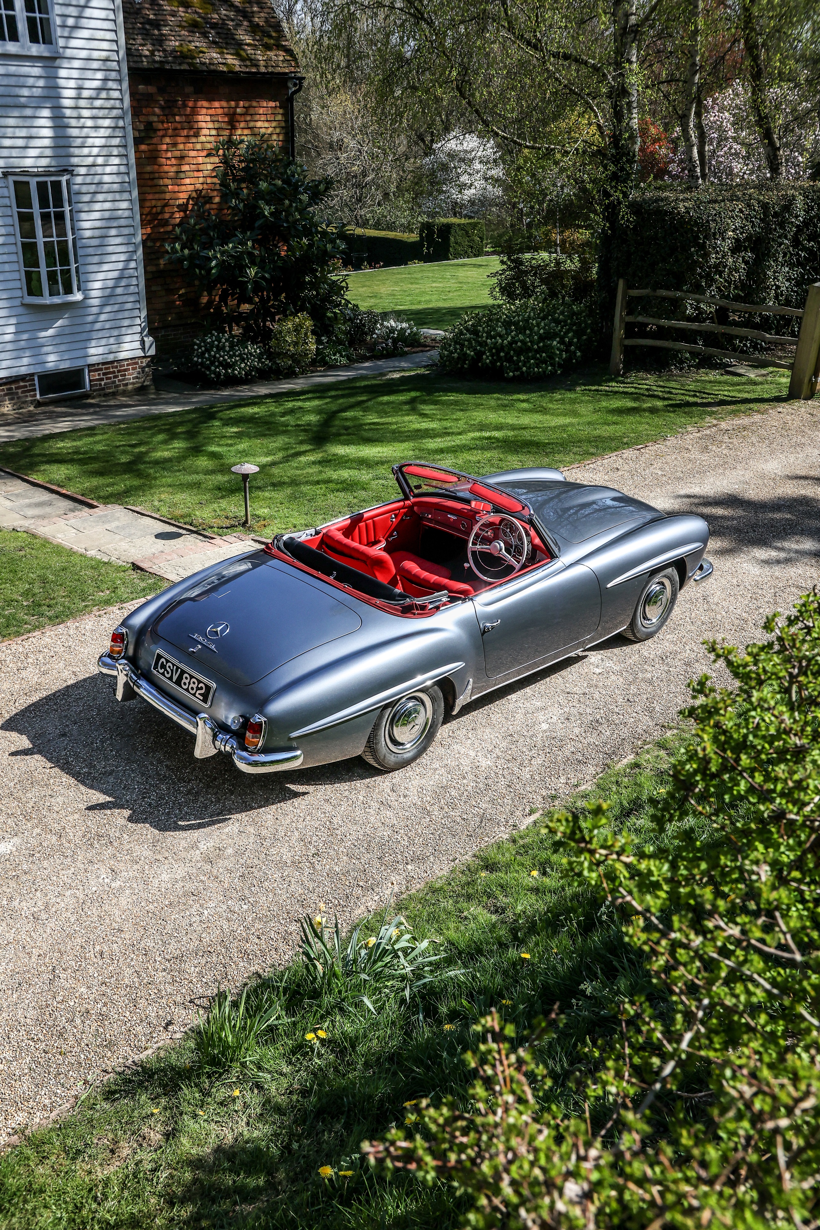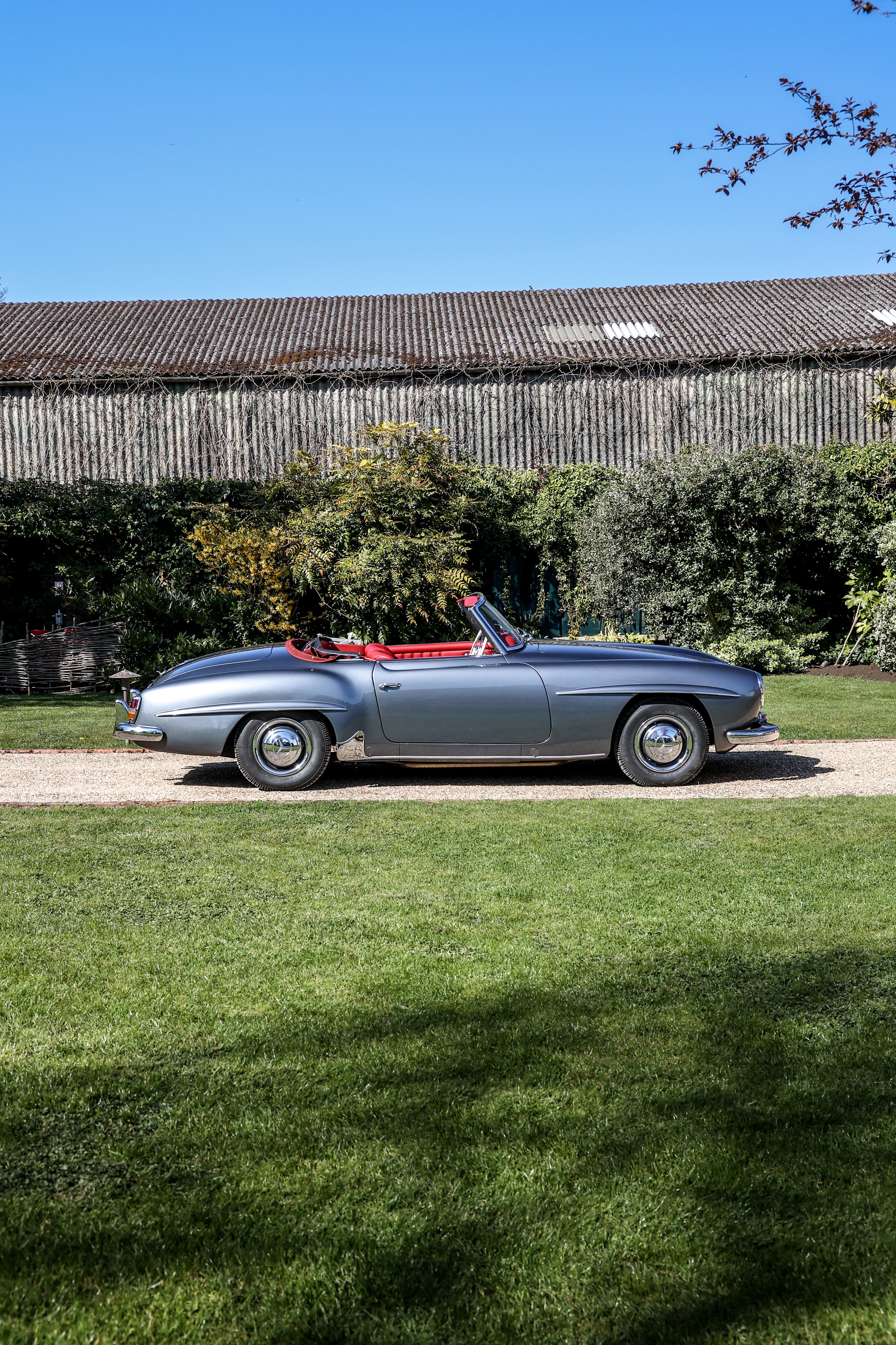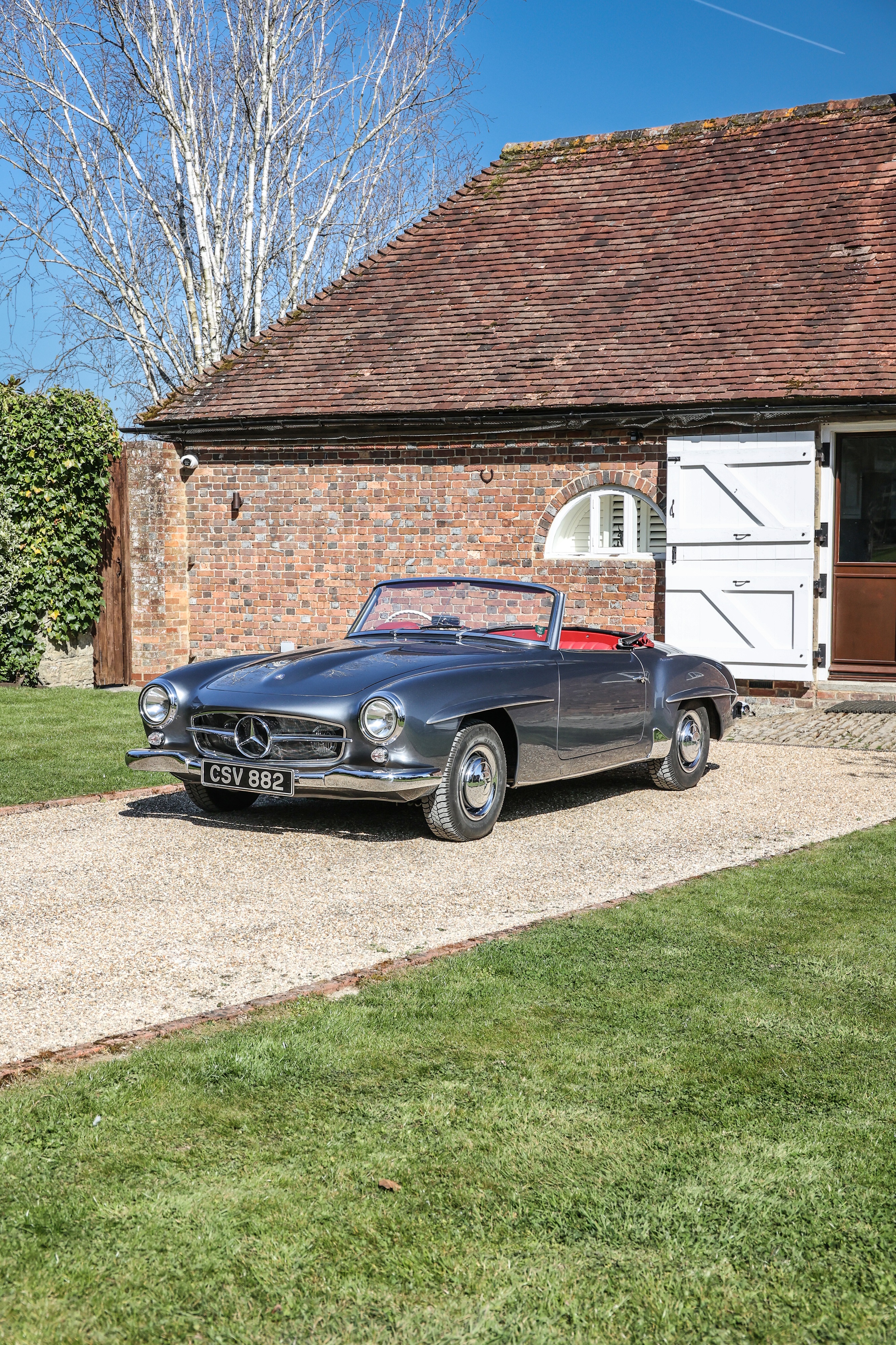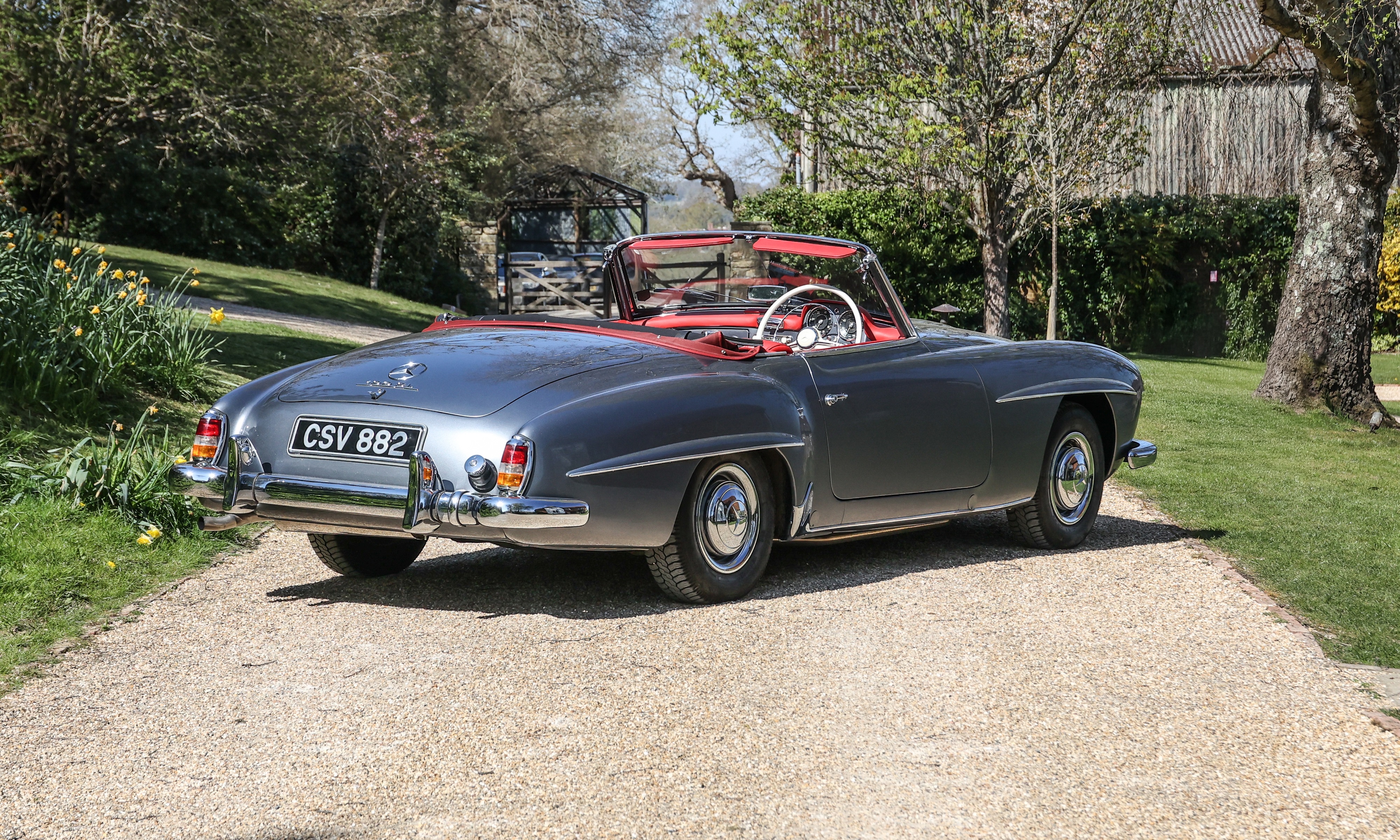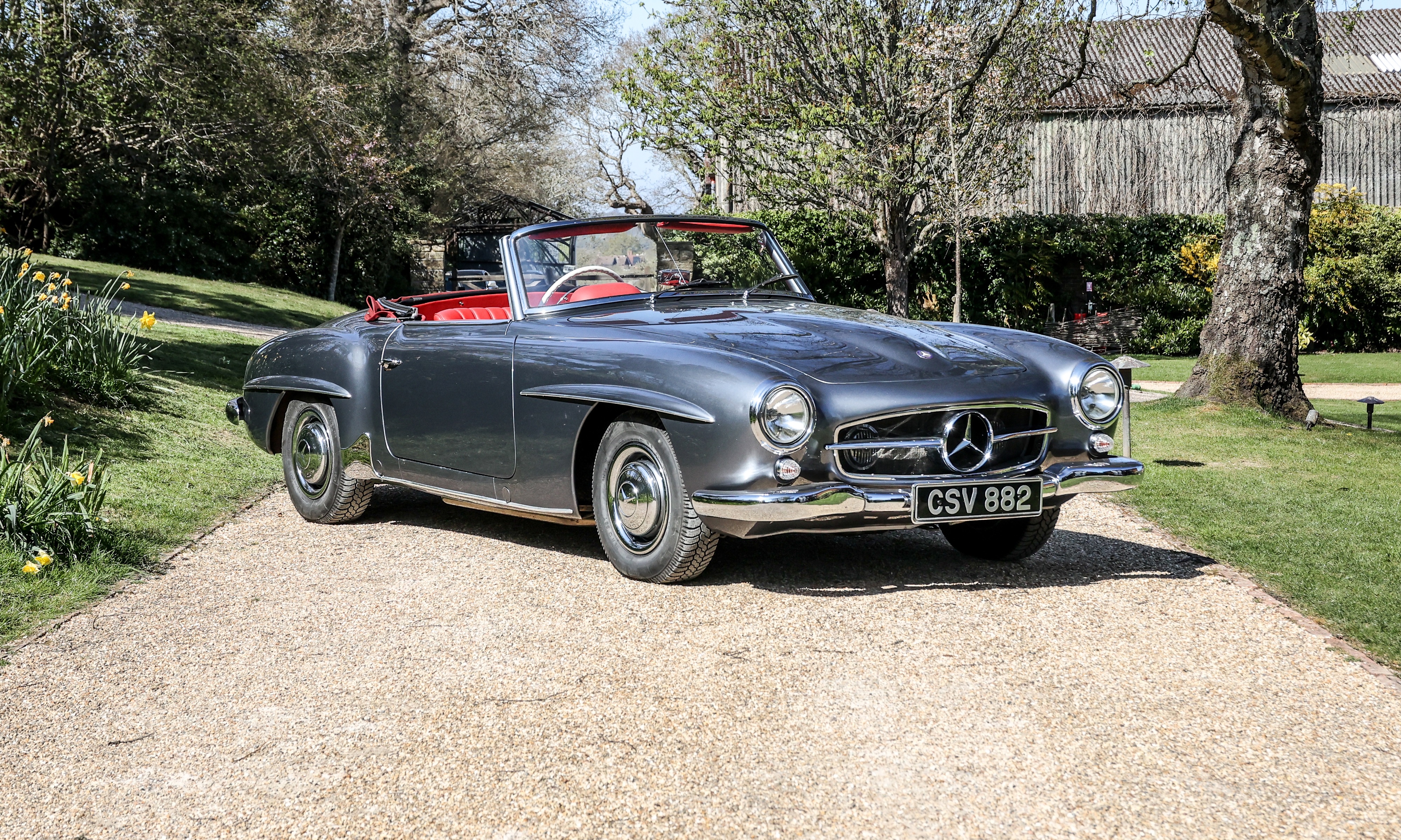 This 1962 Mercedes-Benz 190 SL has been fully rebuilt by Desmond Smail, costing £140,000. Finished in metallic grey with a red leather interior and Oxblood hood, the engine, gearbox and body were also rebuilt. The chrome has been restored throughout.