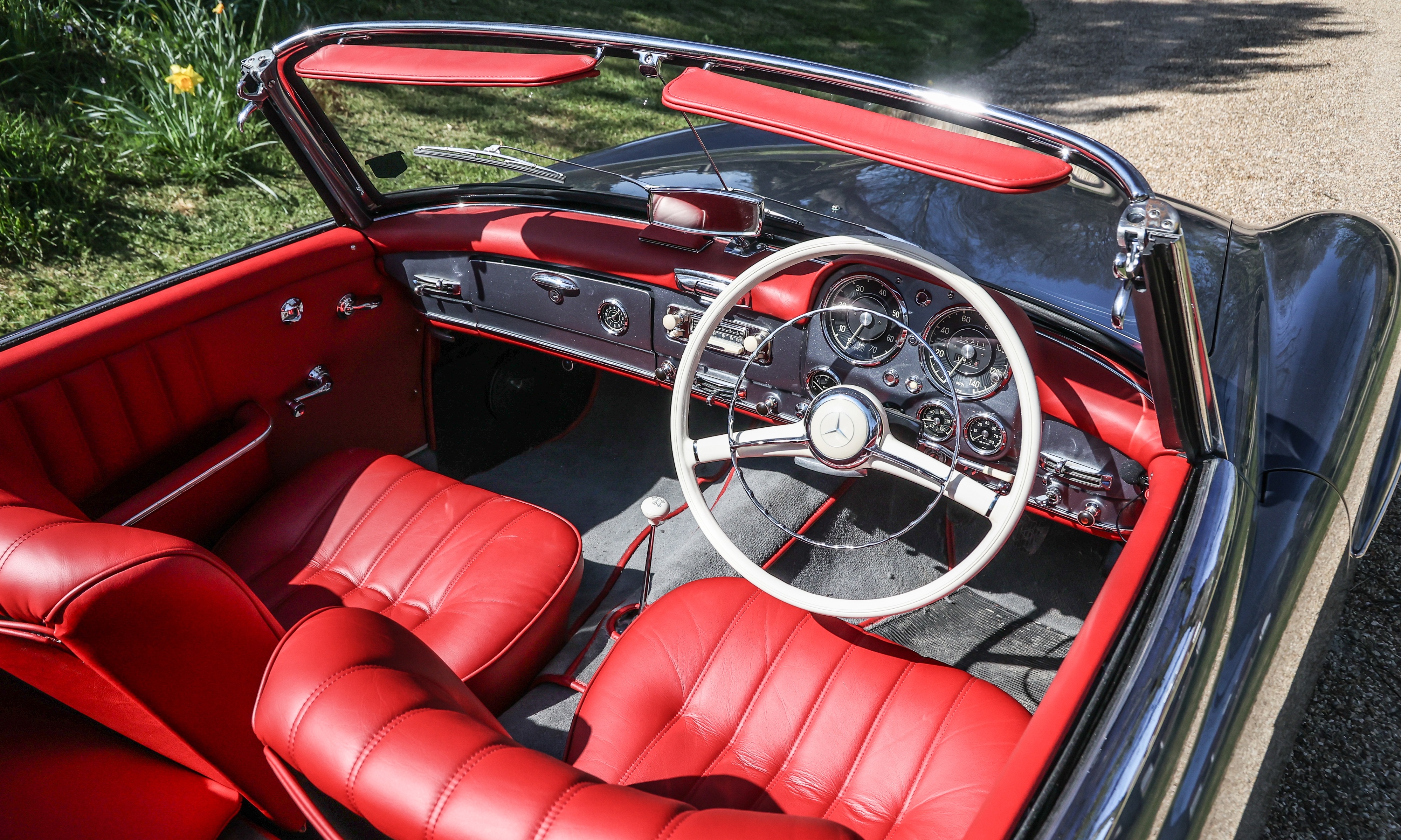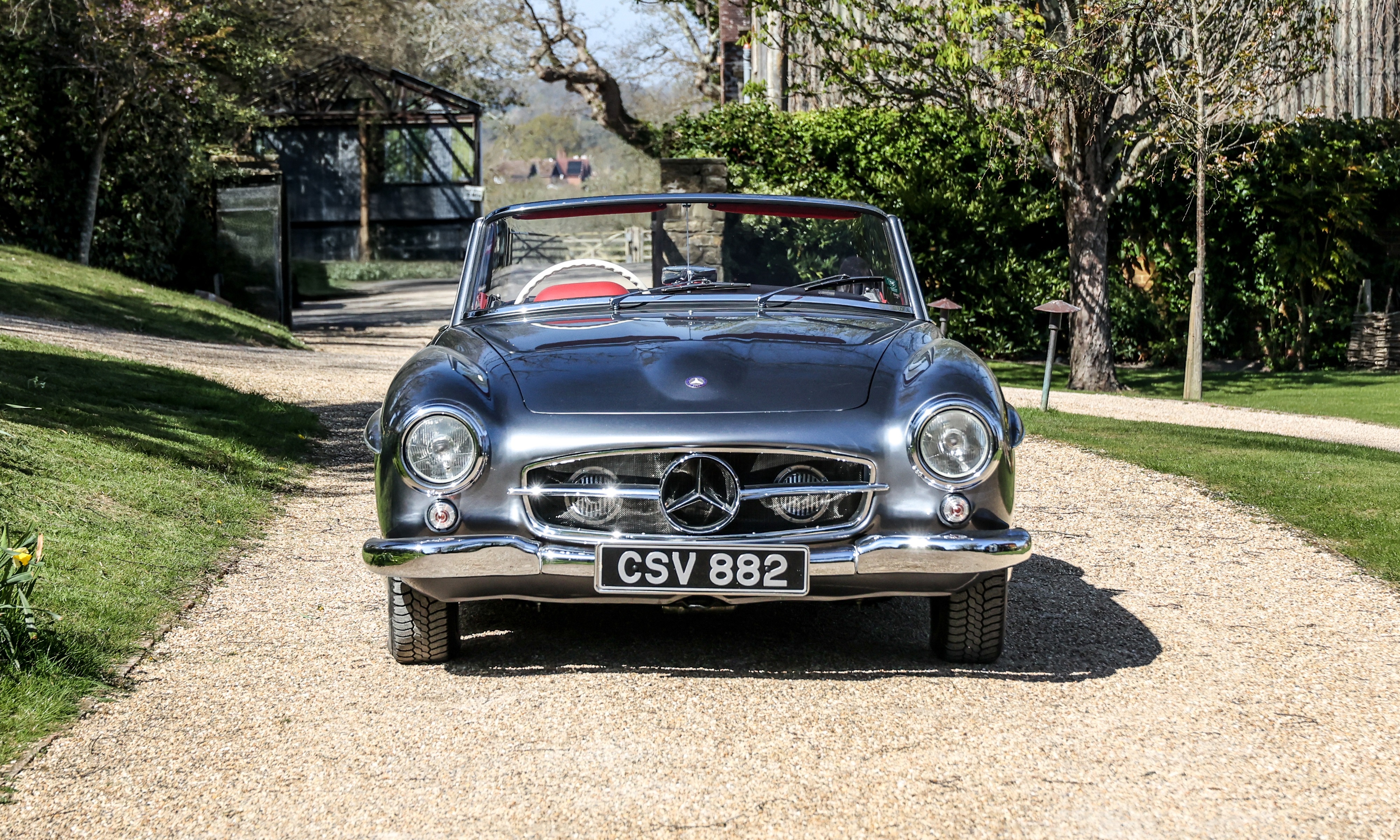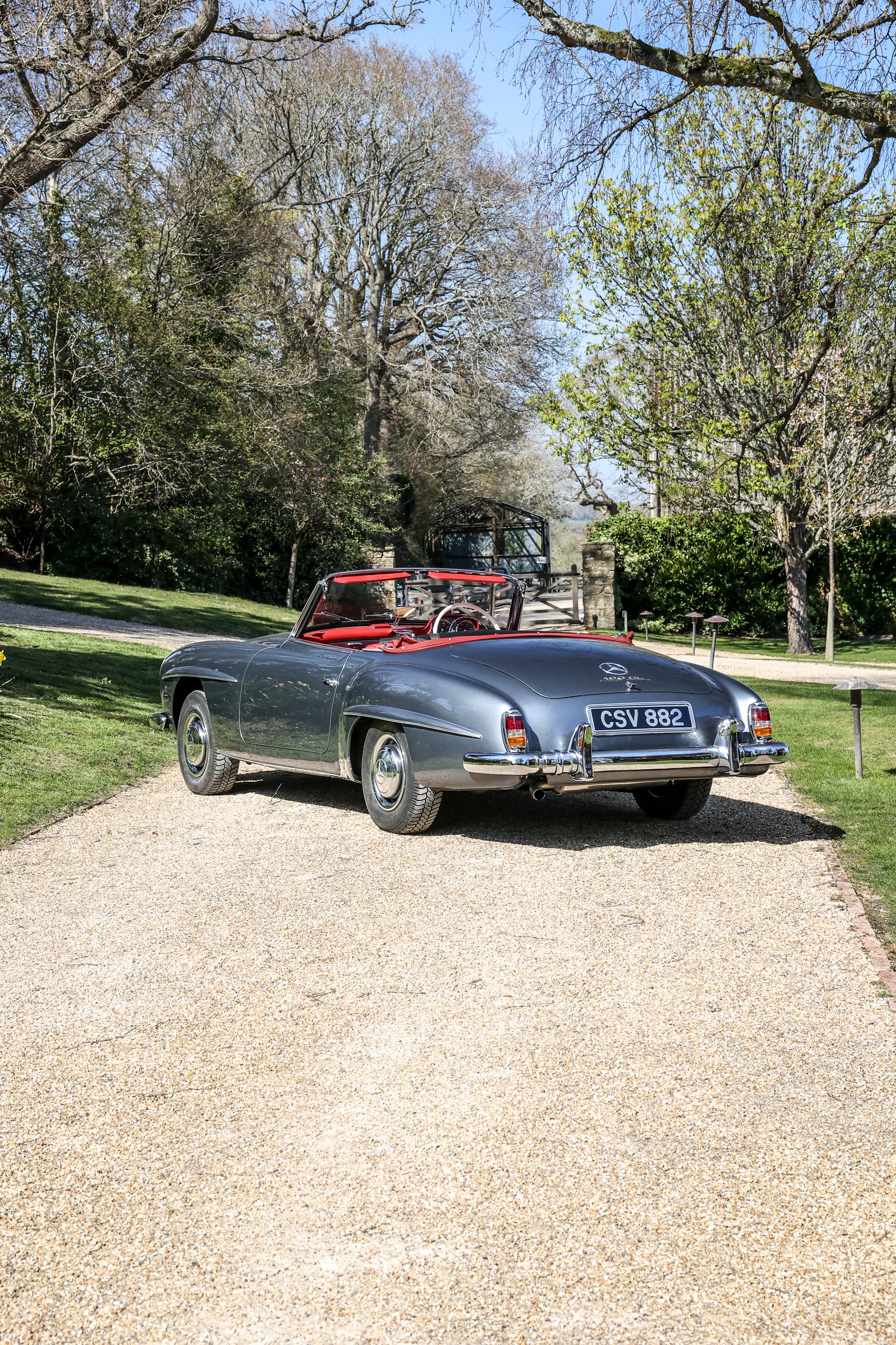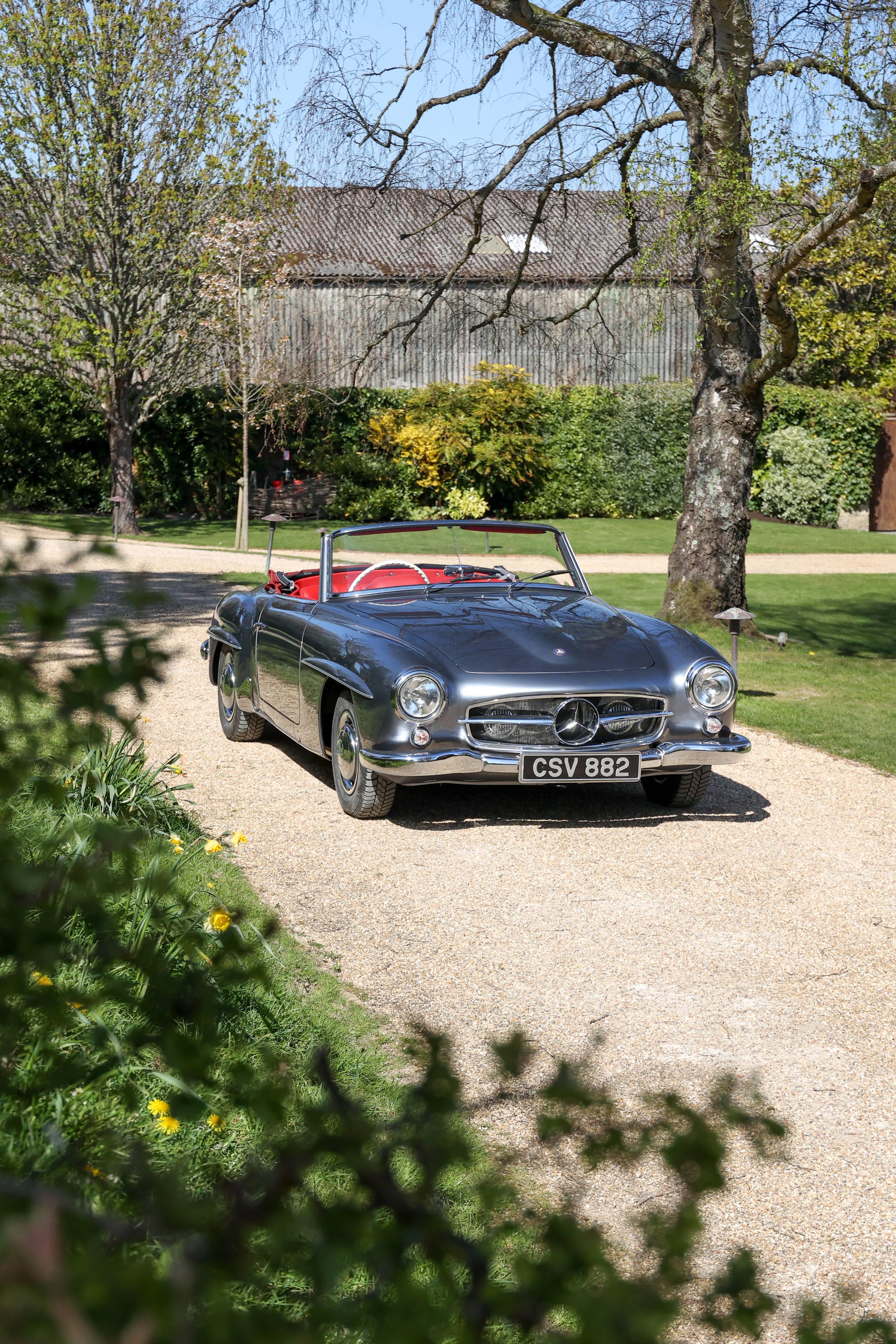 This 1962 Mercedes-Benz 190 SL has been fully rebuilt by Desmond Smail, costing £140,000. Finished in metallic grey with a red leather interior and Oxblood hood, the engine, gearbox and body were also rebuilt. The chrome has been restored throughout.