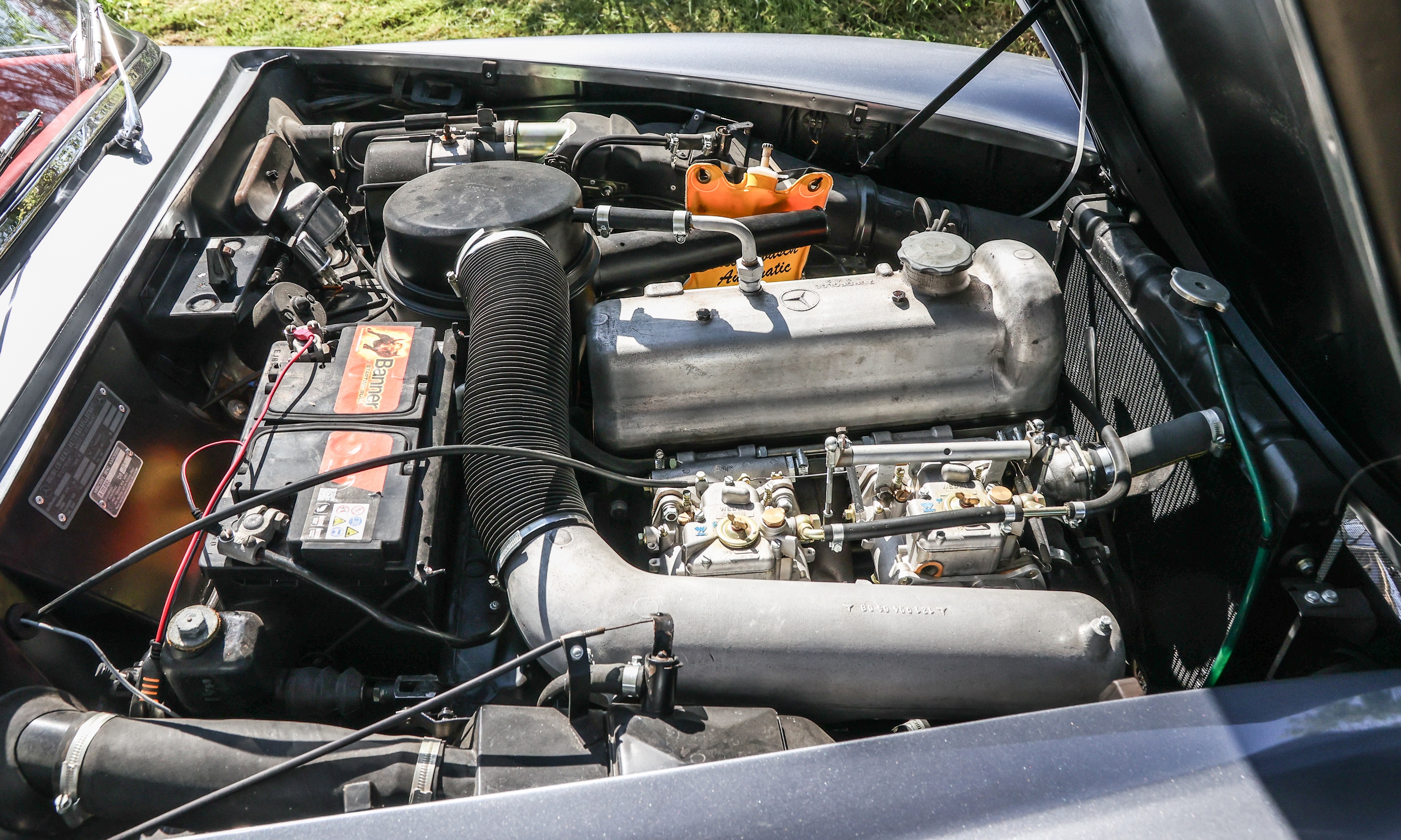 The four-cylinder engine block of the 190 SL was based on the six-cylinder engine of the 300 SL.