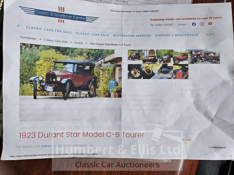 There is little information of its early American history but the history file includes a brochure from W.G Reynolds Motor Co of Fort Scott Kansas, who were agents for Durant and Star cars.