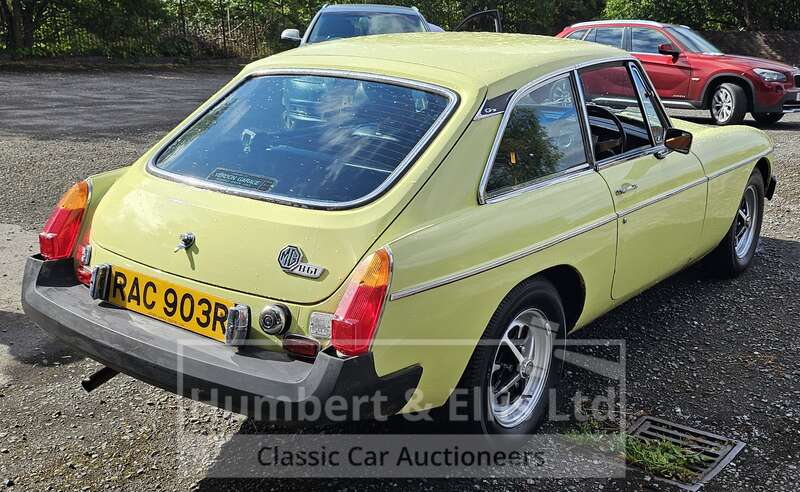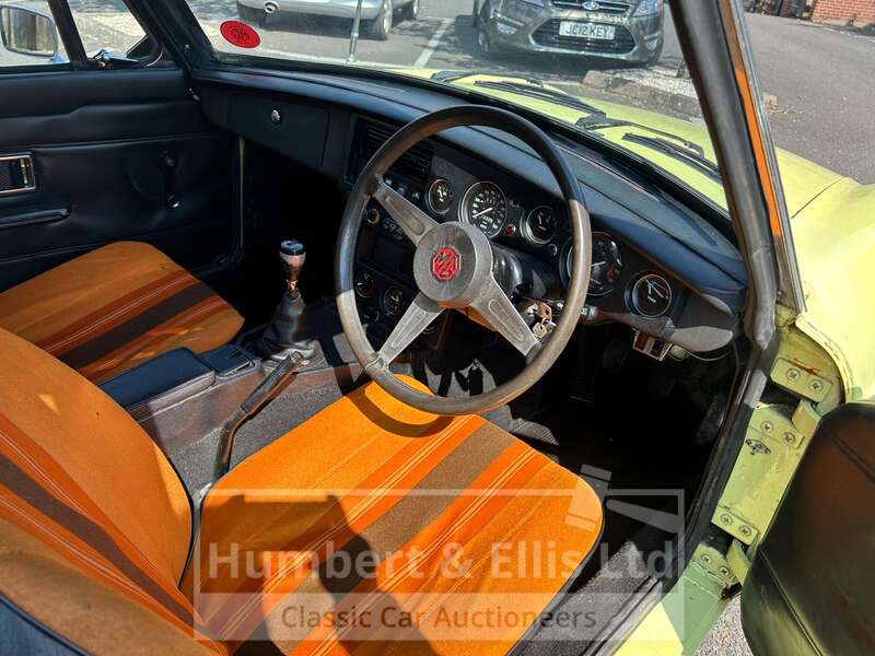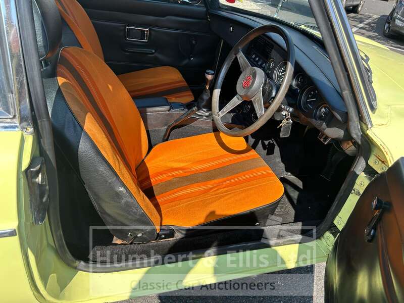 1976 MG B GTWhile not a rare model, MGB GTs are cherished for their classic styling and are considered accessible, usable, and enjoyable classic cars.This example sports its original orange striped fabric seats - whilst not to everyone's taste they are the epitome of 1970's designMake: MGModel: B GTRegistration Plate: RAC 903RYear of Manufacture: 1976Colour: YellowHas Keys: YesMOT: ValidMOT Expiry: 2026-08-22Mileage: 70131Mileage Type: MilesV5: PresentDrive: RHDTransmission: ManualFuel Type: PetrolEngine Size: 1798Engine Number: -12403Body Type: SportsChassis Number: 2417GRegistered Former Keepers: 8Interior: Original multi colourDoors: 2Seats: 4 This vehicle is located near Burslem, Stoke-on-trent, ST6 from where it will need to be collected.Motorscan report and videos available on request.Viewing is by appointment, please contact the office to arrange.