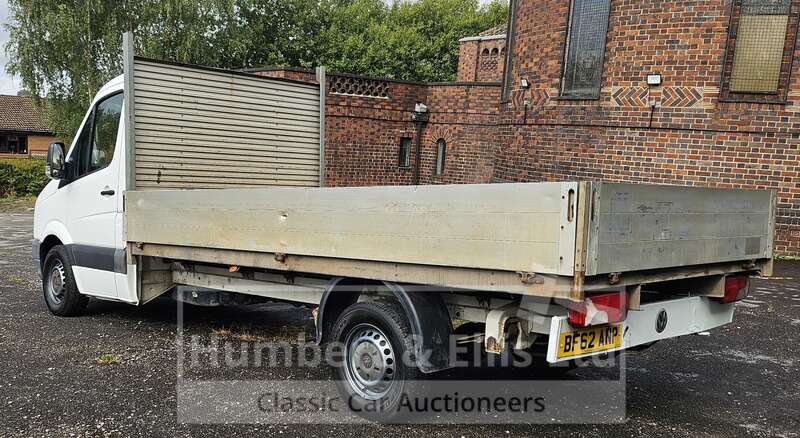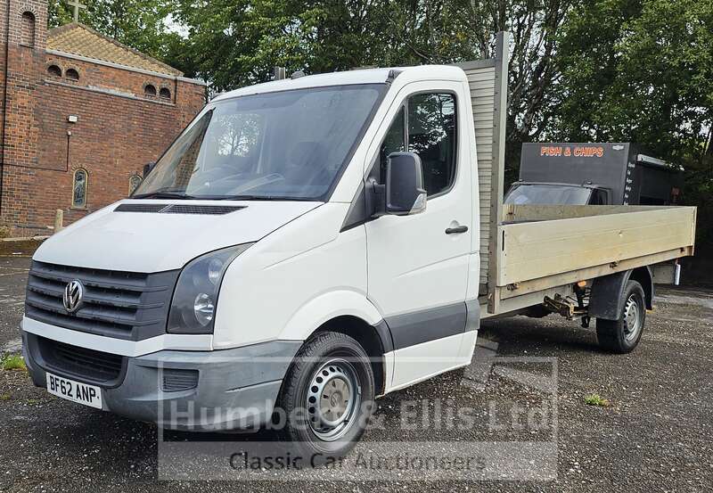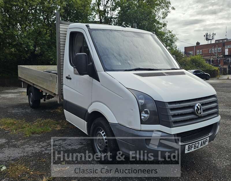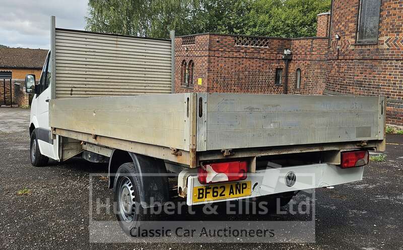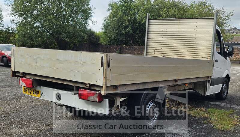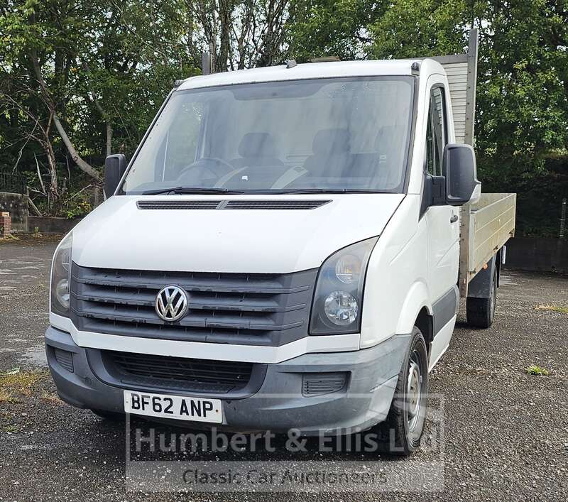 Make: VolkswagenModel: Crafter CR35 TDI 109 LWBRegistration Plate: BF62 ANPYear of Manufacture: 2012Colour: WhiteHas Keys: YesWeight: 3500MOT: Will have 12 months at point of saleMOT Expiry: 2026-02-01Mileage: 294517Mileage Type: MilesV5: PresentDrive: RHDTransmission: ManualFuel Type: DieselEngine Size: 1968CCEngine Number: CKTB030923Body Type: Dropside LorryChassis Number: 01464Registered Former Keepers: 2Interior: BlackDoors: 2Seats: 3