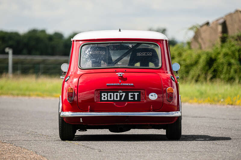 This is a right-hand drive 1964 Morris Mini Cooper 1071 'S' that was professionally built to full race FIA-spec for the 2009 Goodwood St Mary's Trophy race, driven by Bobby Rahal. It features a Swiftune 1,293cc engine, close-ratio 4-speed gearbox, and numerous performance upgrades, accompanied by a history file with restoration photos, MOTs, and invoices.
