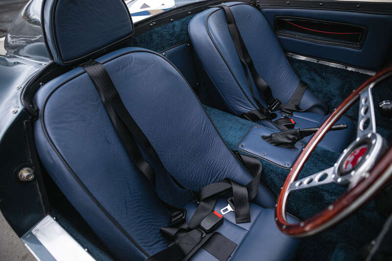 The car has been well-maintained and upgraded since its build in 2019/20. Recent work includes new leather seats, harness seat belts, and additional trimming, as well as mechanical upgrades like K&N filters and an upgraded fuel tank. The description notes the car is in an attractive shade of steel blue metallic with sporty features. While there may be minor imperfections typical of a vehicle of this age and type, the overall impression is of a well-cared-for and regularly improved vehicle.