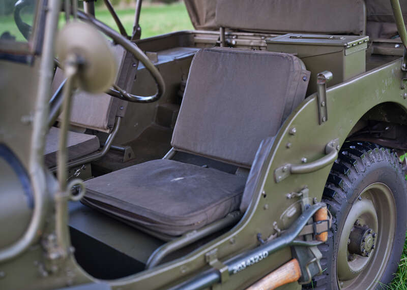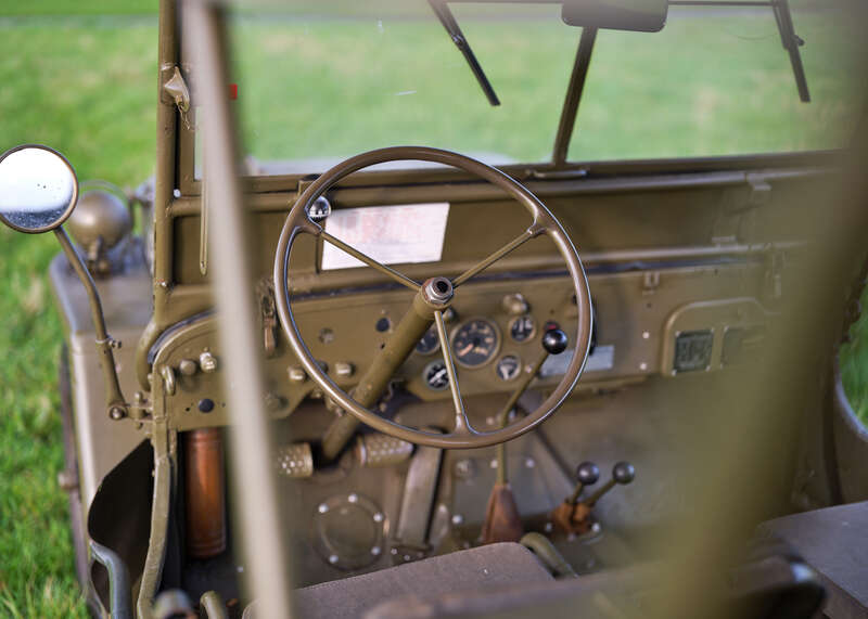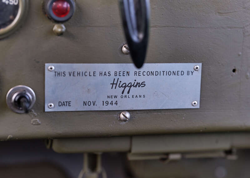 This is a 1943 Ford GPW 'Willys' Jeep, chassis #GPW-154249, a WWII vehicle reconditioned by Higgins Industries in November 1944. Fully restored with help from ‘Dallas Auto’, it comes adorned with ‘authentic’ bullet holes and is described as being in ‘excellent working order’.