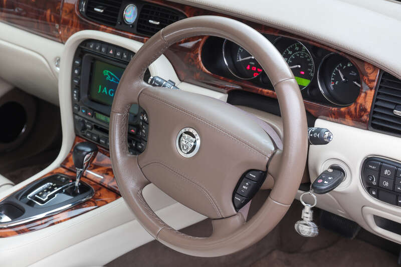Developed from the X350, the all-aluminium 358 arrived in 2007 and was in production for just two years It featured a revised front grille with a new Jaguar emblem inset and a prominent lower grille Powered by a 204bhp/233lb/ft, 2.7-litre TDVi engine driving the rear wheels through a ZF 6-speed automatic transmission 0-60 in 7.8 seconds and 141mph yet still able to achieve 38mpg Finished in Pearl Grey, it sits on 20" Jaguar Callisto alloy wheels It's Sovereign-spec with Ivory/Mocha leather piped in Mocha and is luxuriously equipped with ventilated heated seats, a heated screen, double glazing and rear seat entertainment Supplied with three keys, a full and book pack, detailed history file along with a sales brochure The Cherished Registration Number, M27 SOV, will remain with the car Exterior