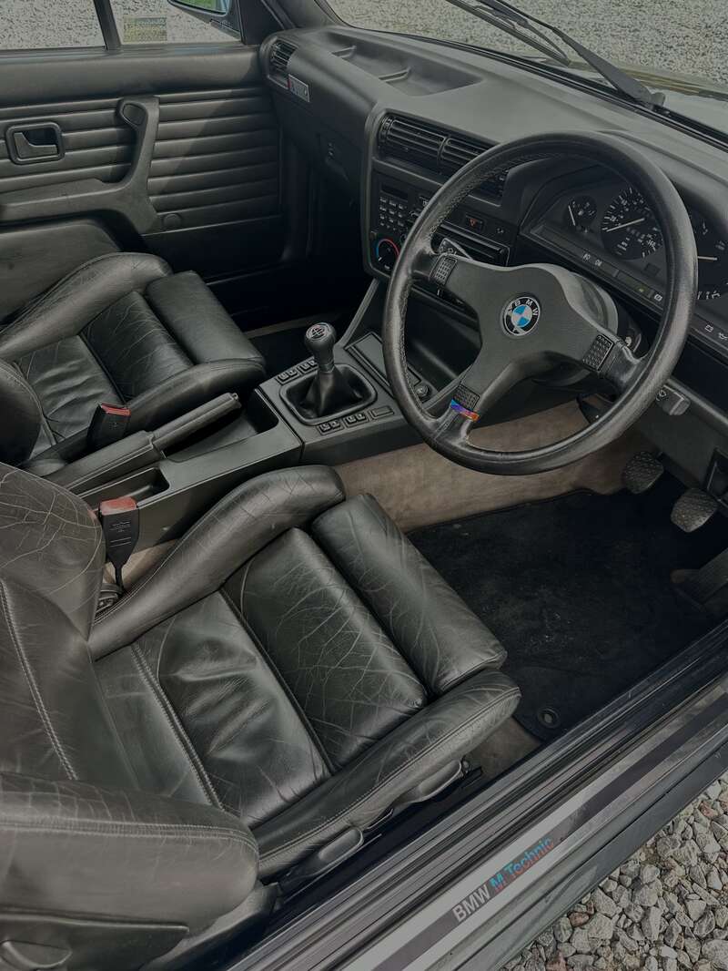 This 1990 BMW 325i M Technic Sport Convertible is a rare, limited edition model with a manual gearbox and factory hardtop. It features a well-preserved black leather interior, recent mechanical work, and desirable factory options, making it a highly sought-after collector's item.