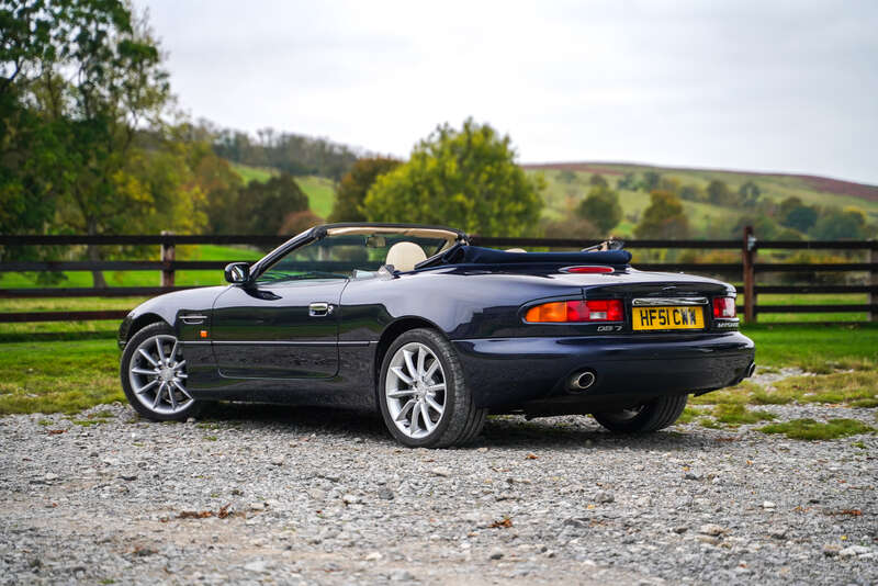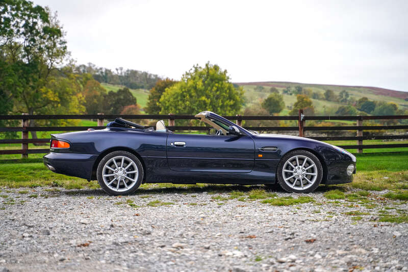 This 2002 Aston Martin DB7 Vantage Volante is a rare manual transmission model with low mileage and a recent cosmetic refresh. The car boasts a comprehensive service history, including work done at Aston Workshop, making it a highly desirable example for collectors.