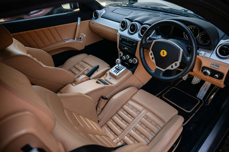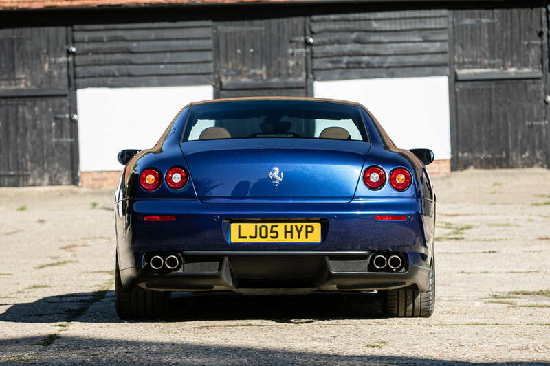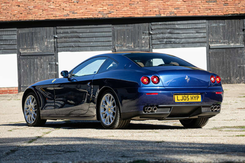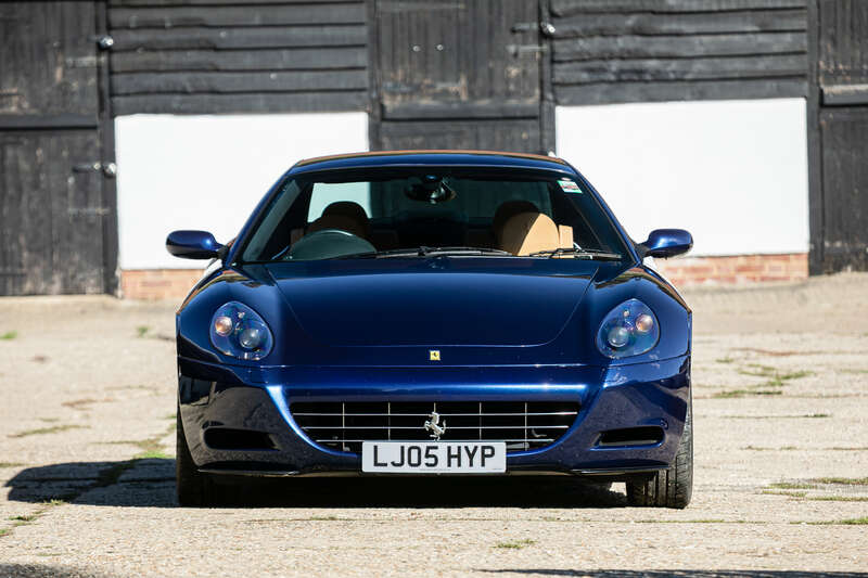 This 2005 Ferrari 612 Scaglietti is a rare, low-mileage example with a manual gearbox, finished in Tour de France Blue with tan leather. It has been fastidiously maintained with a comprehensive service history, including recent work, making it a desirable grand tourer.