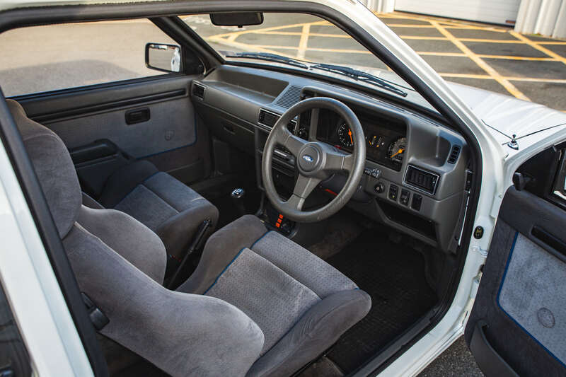 Power came from a turbocharged and fuel-injected 1,597cc CVH engine producing 132bhp and 133lb/ft of torque, giving the RS Turbo serious pace for its time with 0–60mph in 8.2 seconds and a top speed of 128mph.