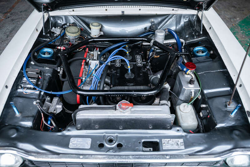At its heart is a 1.7-litre Cosworth BDA unit prepared by AGRA Precision Engineering, featuring a dry-sump system, Kent BD3 camshaft, Lumenition ignition and twin Weber 45 DCOE carburettors.